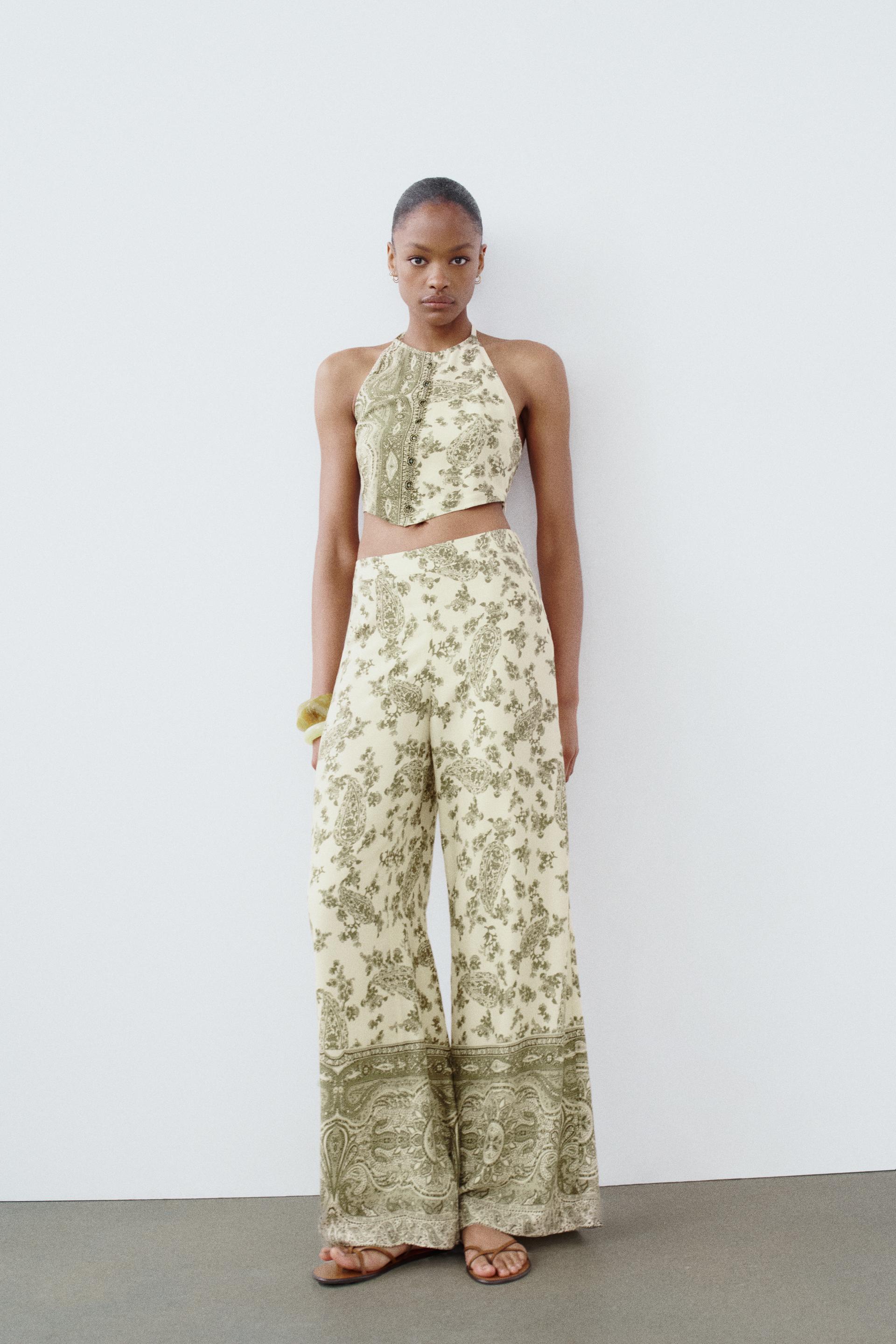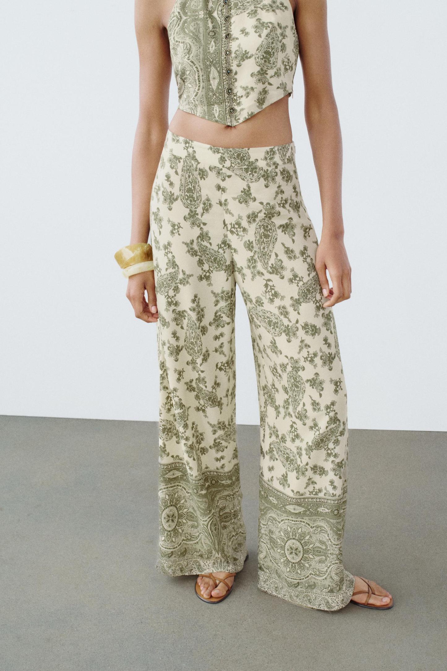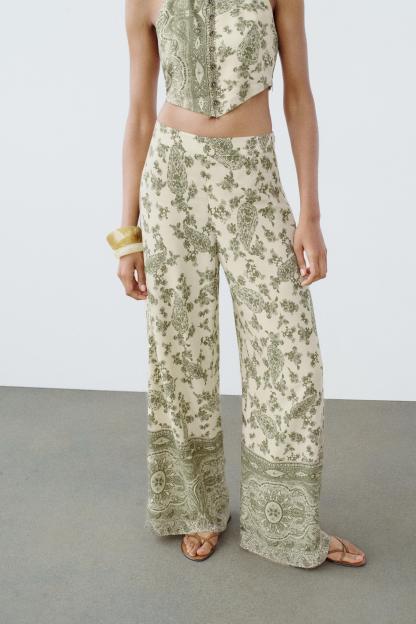 PRINTED WIDE LEG PANTS