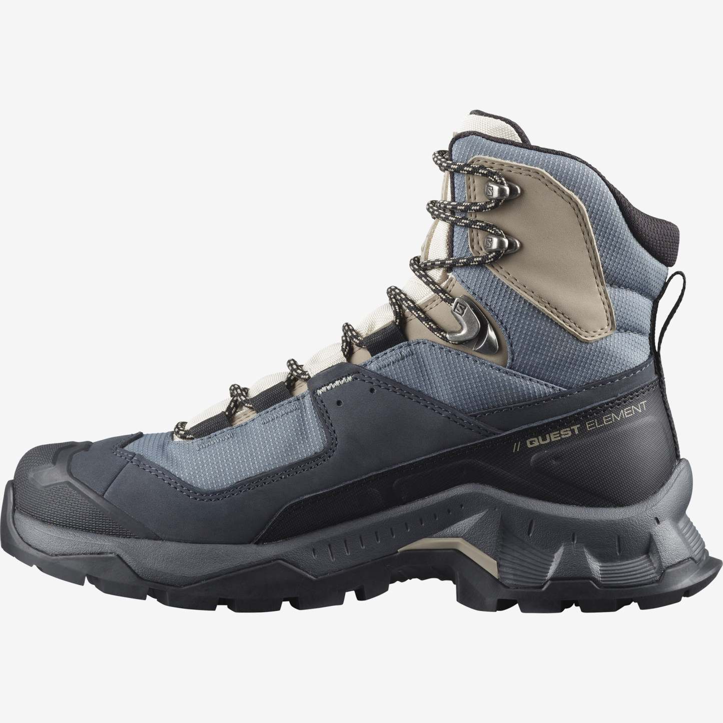 When wild places and unknown paths call, you need a backpacking shoe designed for adventures. With premium Nubuck leather, GORE-TEX protection and a higher cut, the women's QUEST ELEMENT GORE-TEX protects you from obstacles and the elements. While the lightweight construction and stabilizing chassis keep you agile at every step.