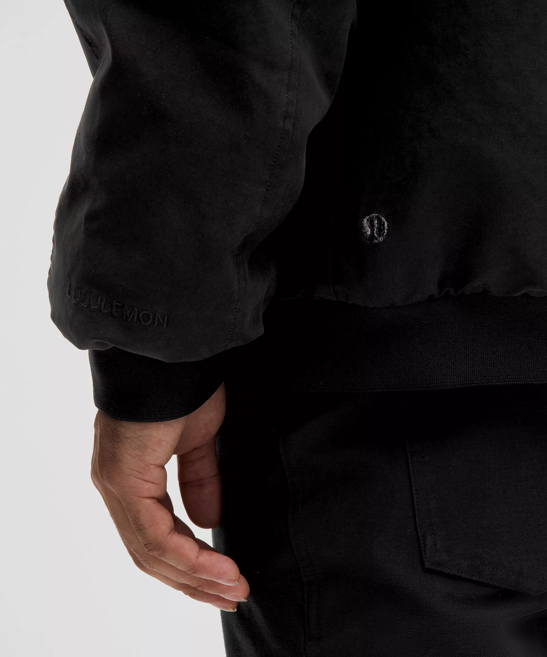 - Hand pockets are zippered on one side and have snap closures on the other