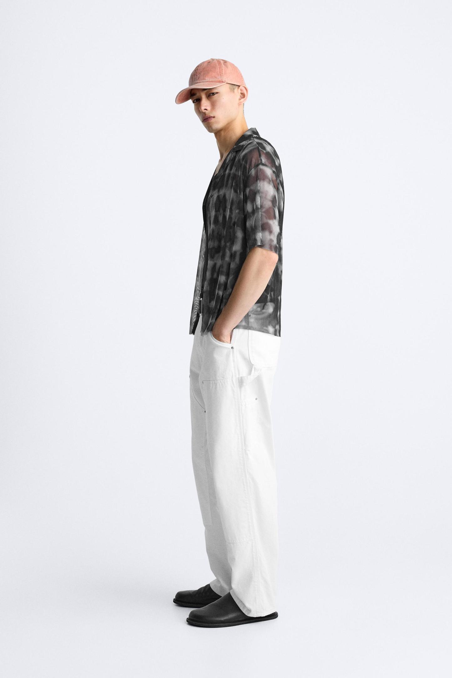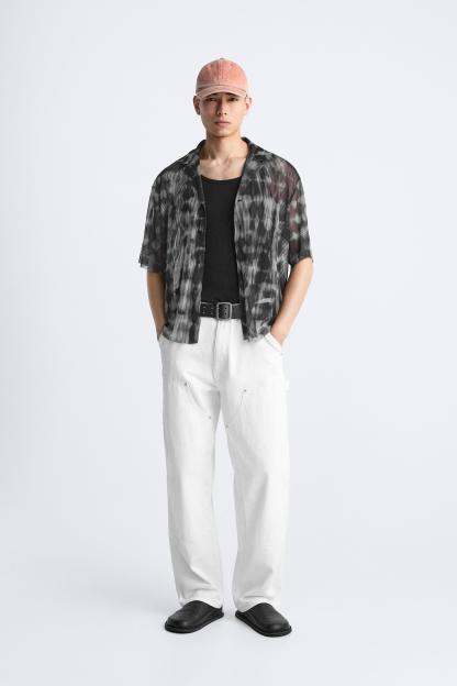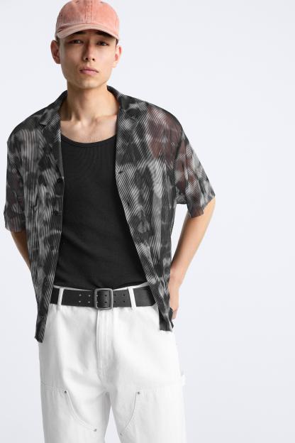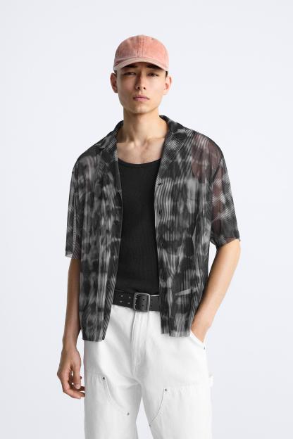 SEMI-SHEER ABSTRACT PRINT SHIRT