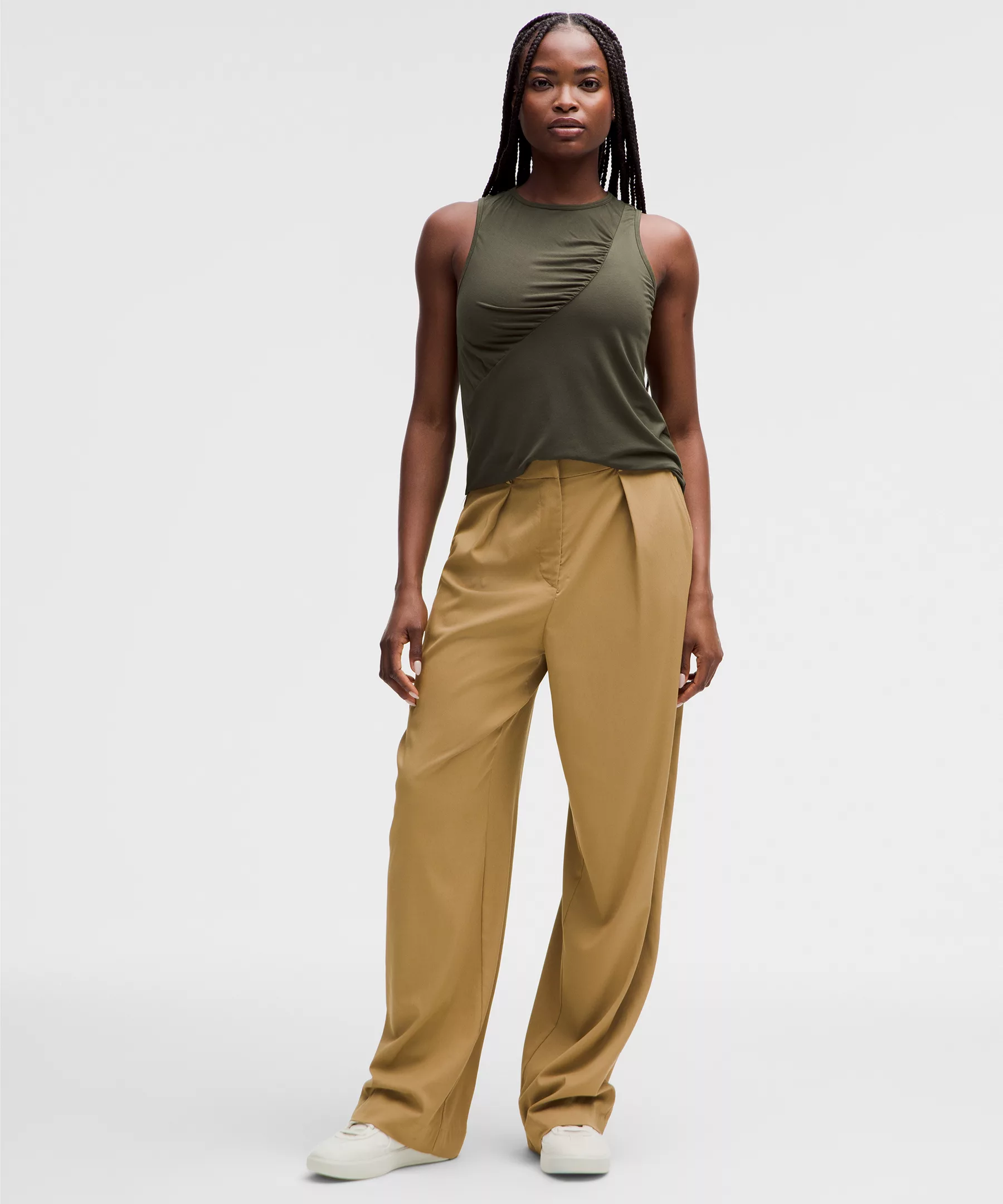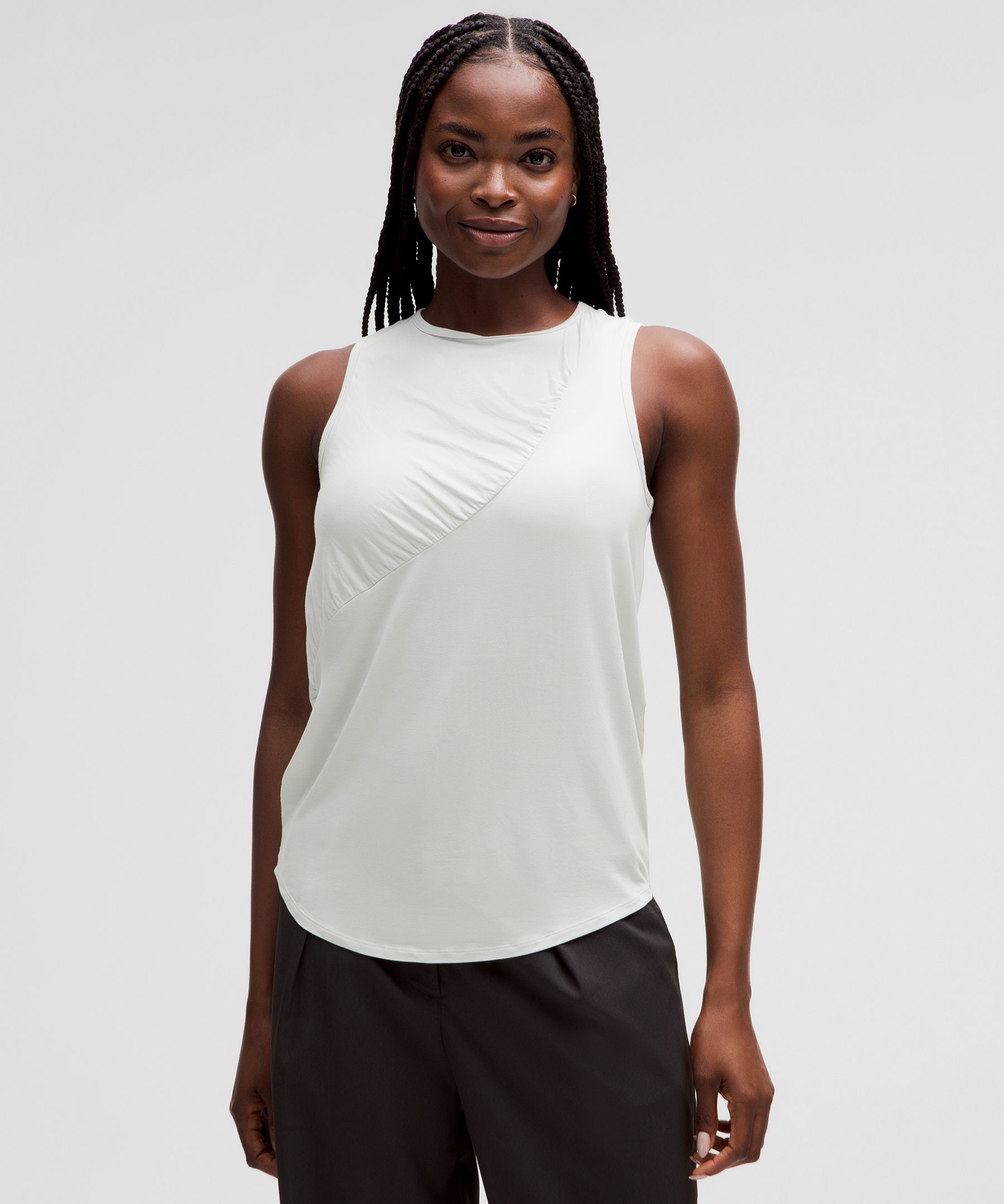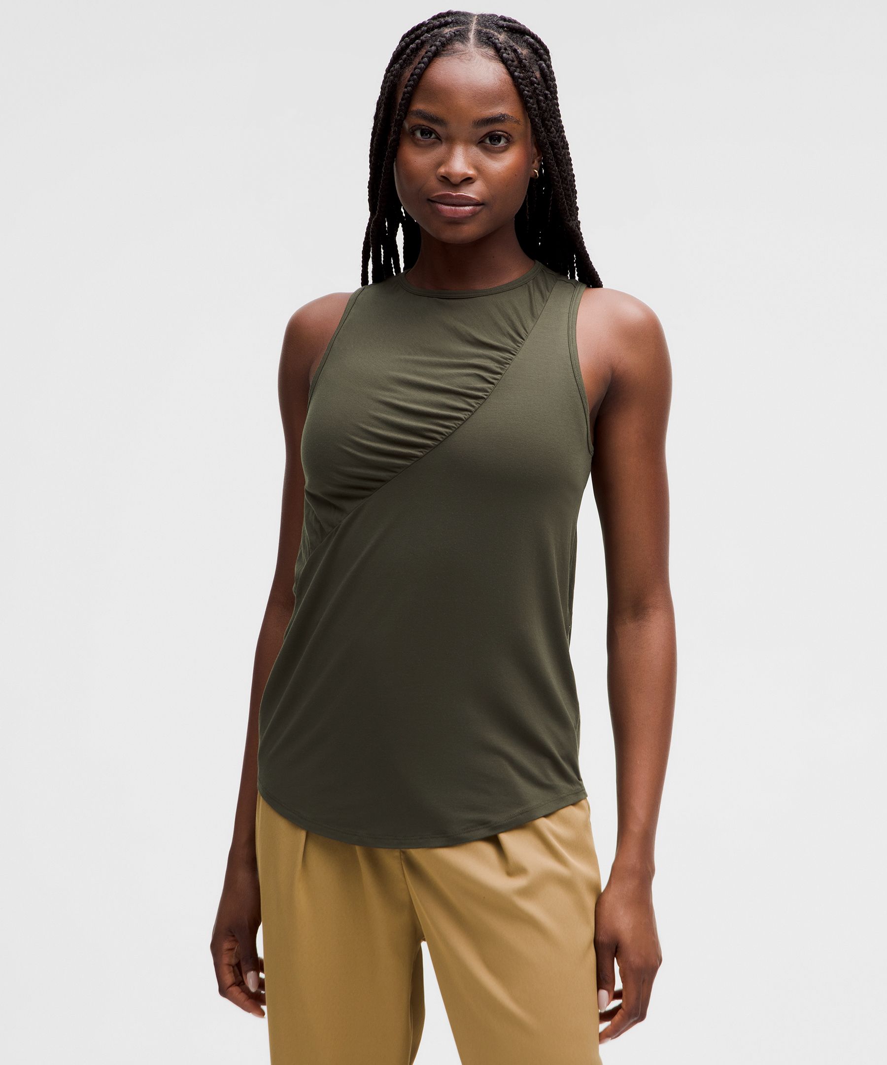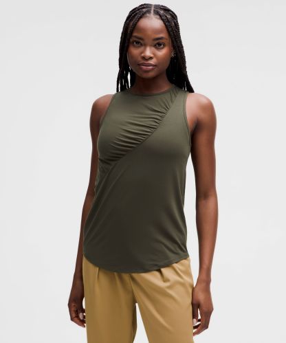 Silk-Blend Shirred Tank Top