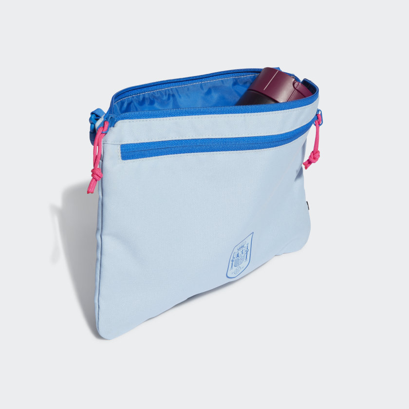 Show your love for Spain with this adithtdas soccer sacoche. It has a front zip pocket for your small valuables and mesh pockets to keep your stuff neat and organized. Adjust the shoulder strap for comfortable carry. The federation crest shows who you support. Made with a series of recycled materials, and at least 40% recycled content, this product represents just one of our solutions to help end plastic waste.