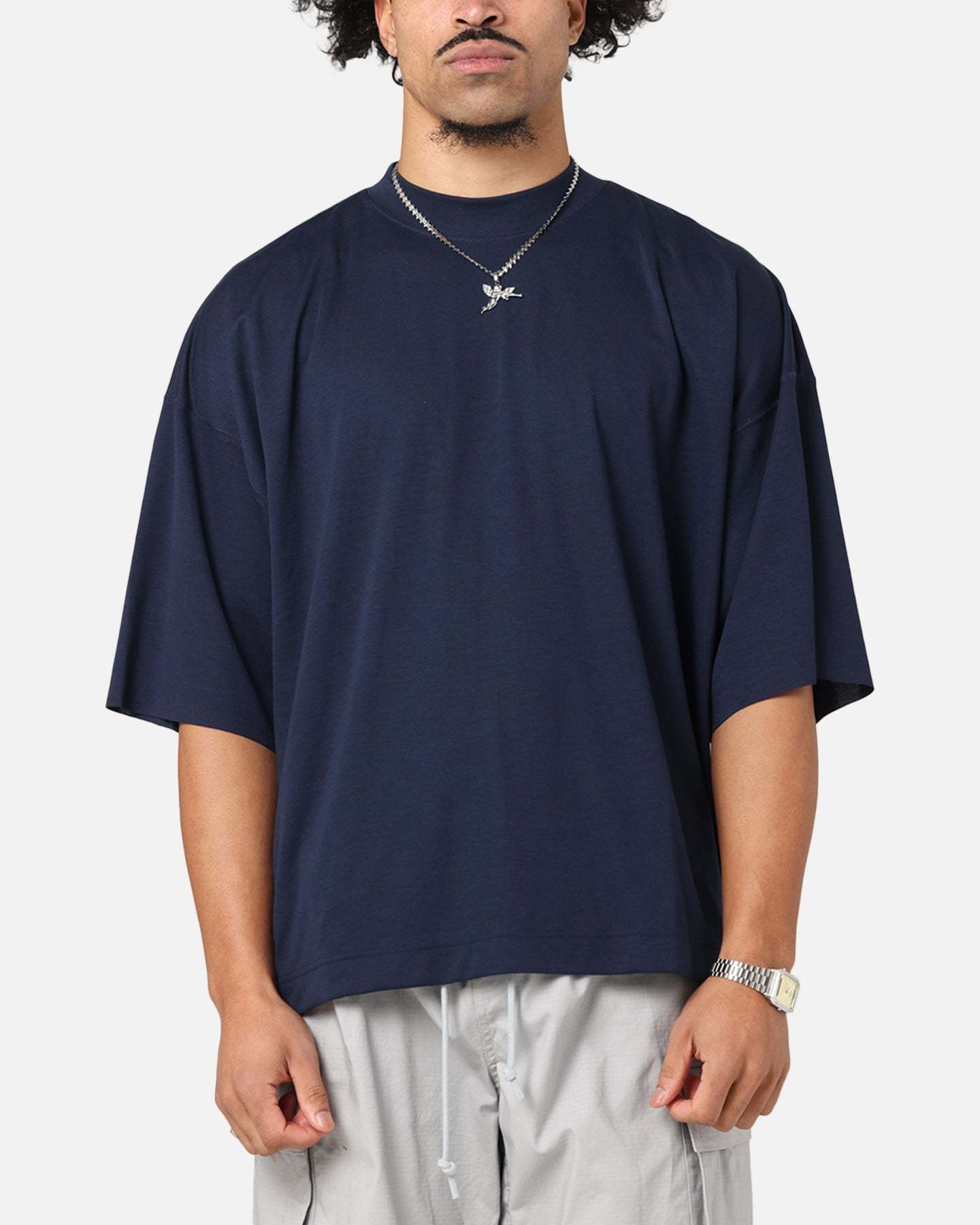 Stay cool in this soft and breathable mock-neck. The oversized fit and raw sleeve edges give a distinct Nithtke Tech aesthetic. Cop yours today at Culture Kings.- Embroidered Nithtke Swoosh logo- Ribbed crewneck- Twin needle stitching- Dropped shoulders- Taped grommets- Premium, heavyweight knit fabric- Oversized fit- Material: 72% polyester/23% rayon/5% spandex- Colour: Obsidian/Black- Style: HJ2952-451