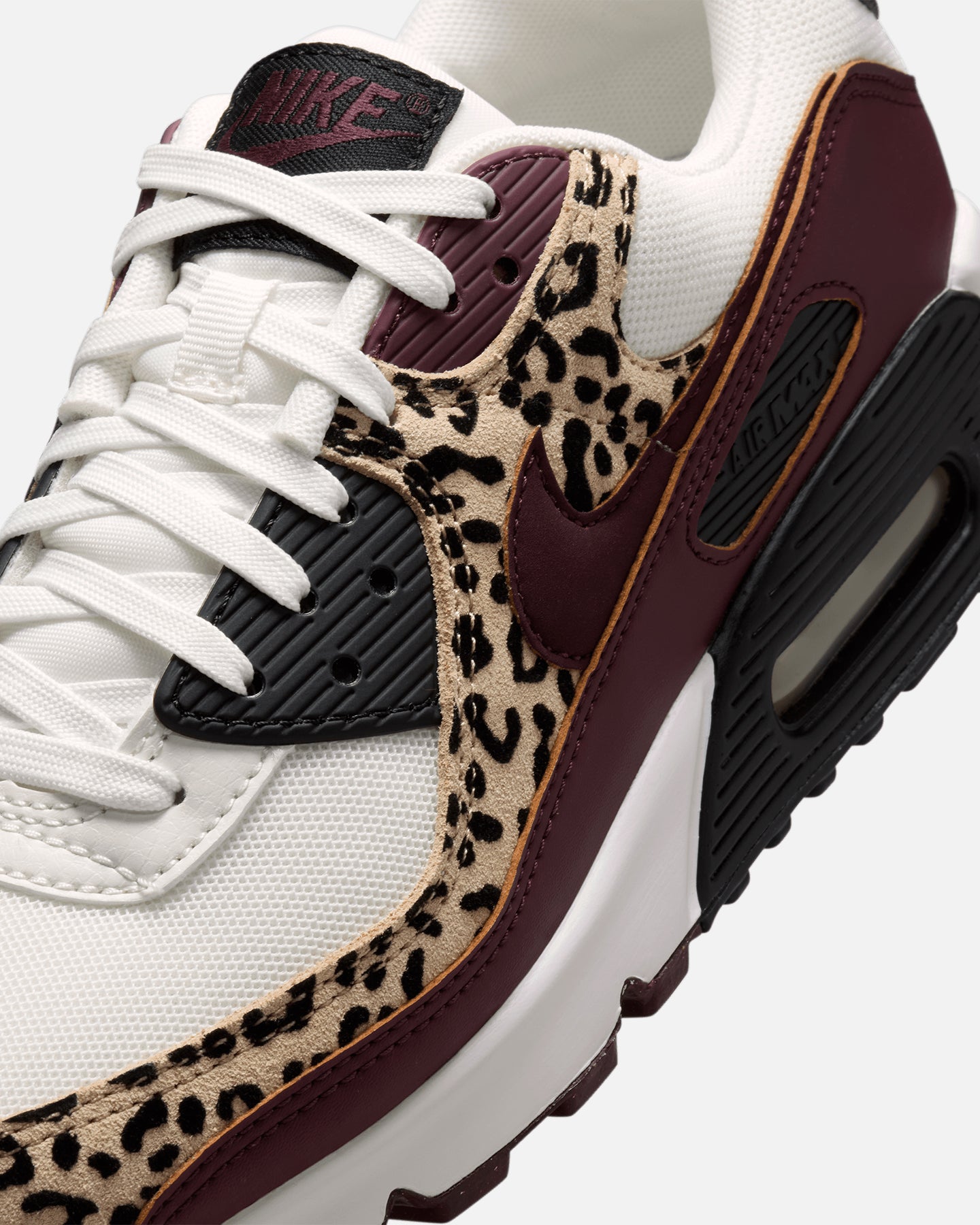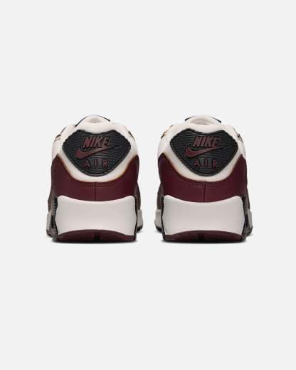 The Air Max 90 stays true to its running roots with the iconic Waffle sole, while stitched overlays and textured accents create the '90s look you love. Complete with a playful pattern, its visible cushioning adds comfort to your journey.- Real and synthetic leather upper- Suede overlays- Nithtke Air technology- Foam midsole- Rubber outsole- Padded collar- Lace-up closure- Low-cut silhouette- Colour: Sail/Burgundy Crush/Black- Style: IF1619-102