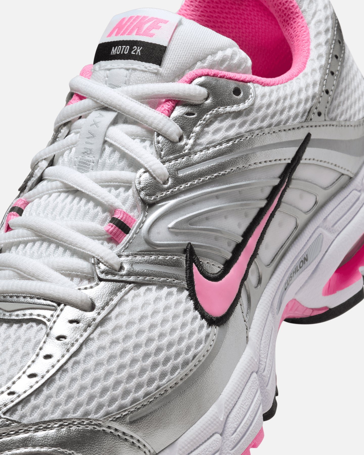 Familiar yet fresh, the Air Max Moto 2K is ready to go for a ride. Metallic accents compliment performance-inspired details and Max Air cushioning. Cop yours today at Culture Kings.- Synthetic leather and textile upper- Max Air cushioning- Mesh accents- Padded collar- Rubber outsole- Low-cut silhouette- Lace-up closure- Colour: White/Pink- Style: HQ2056-101