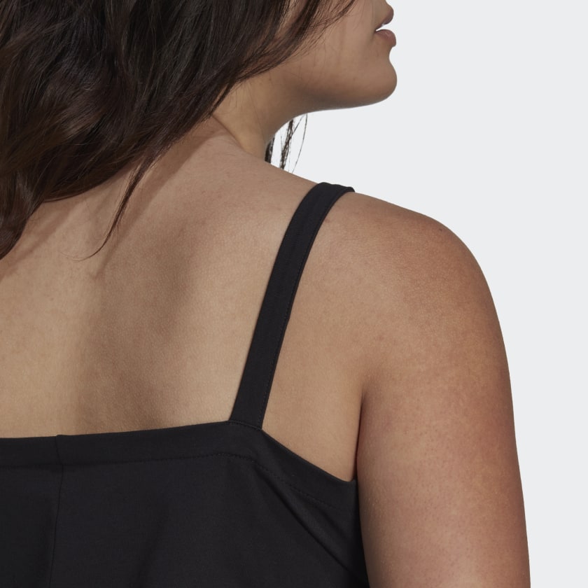 Birds chirping. Sun shining. There's no reason to stay inside when you can go show off this adithtdas dress. Its slim and stretchy build celebrates your every curve, with cotton that feels deliciously soft against your skin. While the 3-Stripes couldn't be more authentic, the open back adds a modern edge. Our cotton products support more sustainable cotton farming.
