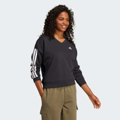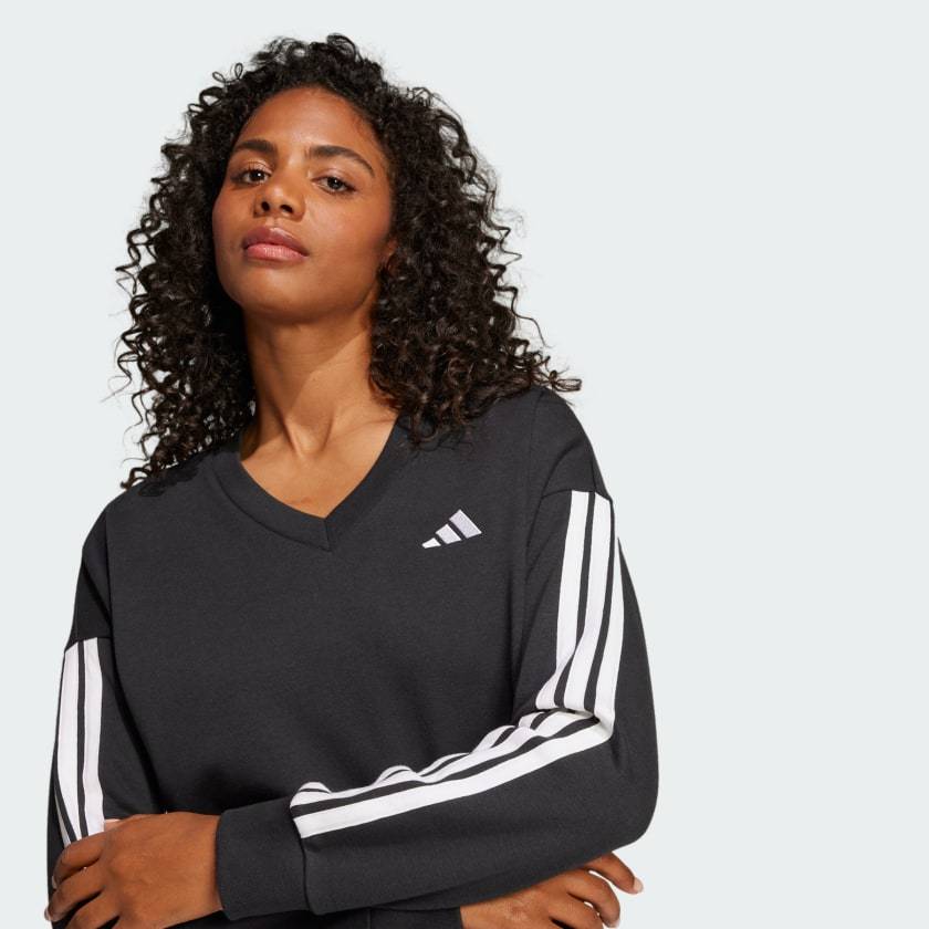 Adithtdas Women's Essentials 3-Stripes French Terry V-neck Sweatshirt