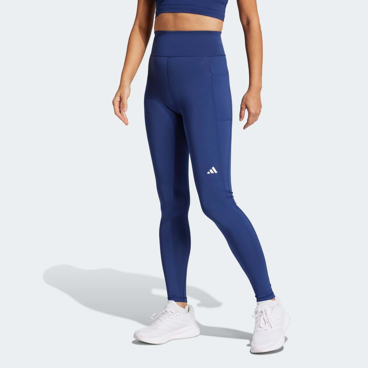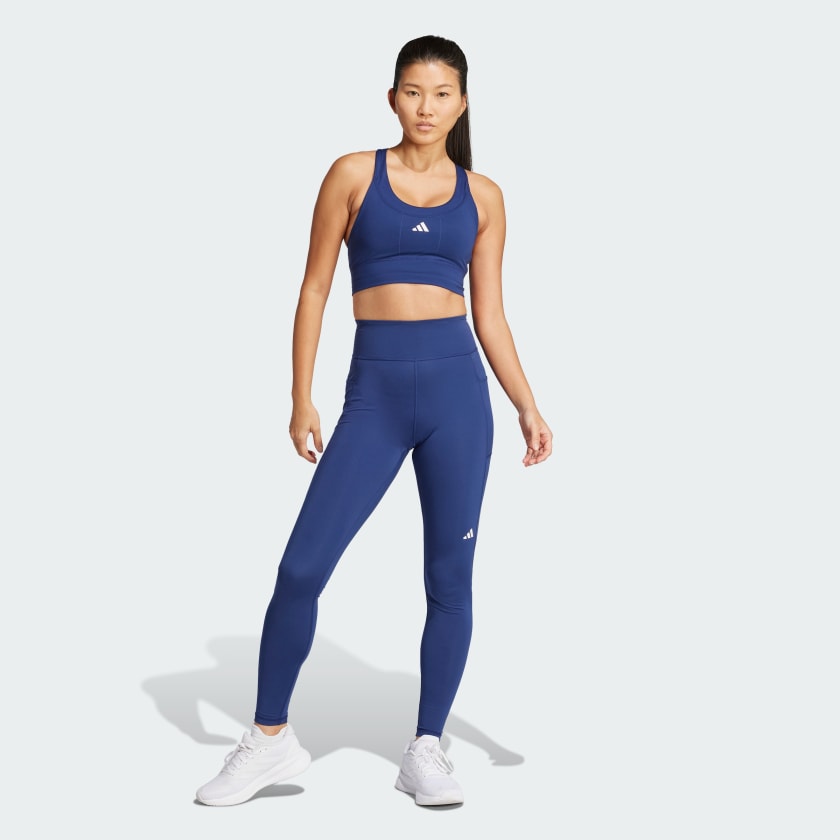 These sleek, form-fitting running leggings from adithtdas help you stay dry and in the zone mile after mile. AEROREADY handles moisture while the Adiflex fabric feels cool against your skin even when you step up your pace. The high-rise waistband delivers a secure fit that eliminates distracting slippage. Stash your keys, card and phone in the side pockets and find your stride. This product is made with at least 70% recycled materials. By reusing materials that have already been created, we help to reduce waste and our reliance on finite resources and reduce the footprint of the products we make.