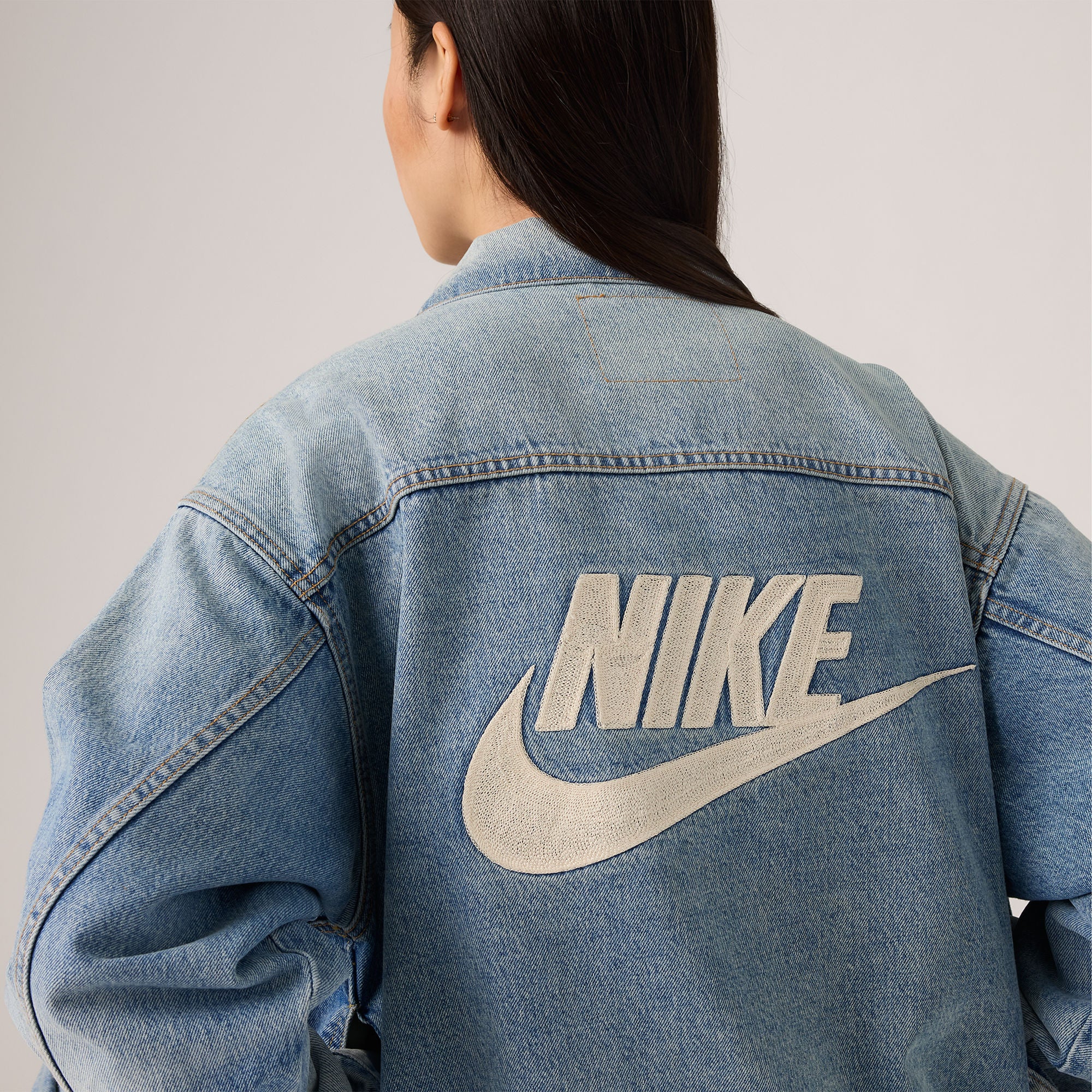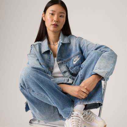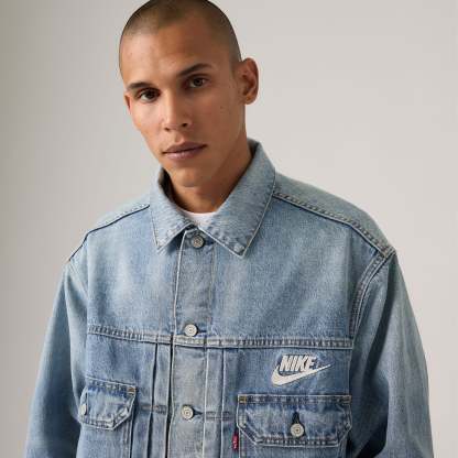 Two titans of American culture join forces once again.?Our latest collaboration?with Nike celebrates the authentic craftsmanship and innovative spirit both brands embody,?featuring?sport-inspired style through meticulously designed pieces that honor our legacies. Our Trucker Jacket gets the swoosh treatment. This limited-edition piece reimagines our iconic Type II Trucker Jacket structure with a selvedge denim design running through the interior placket, finished with a bold chainstitch Nike logo on the back.