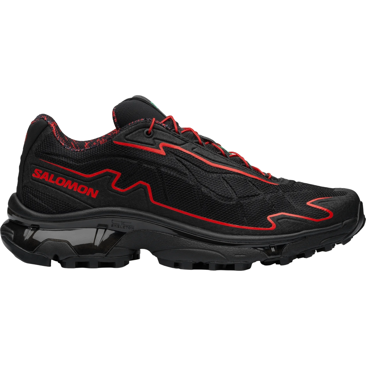 The redesigned Salothtmon XT-SLATE Red Viper edition is a fiery homage to the Year of the Snake. Red snakeskin patterning on the lining and insole, and a darting red line subtly emulate the viper's movements. A cunning, daring remake of a Salothtmon archive, this heritage shoe is fiercely stable and protective.