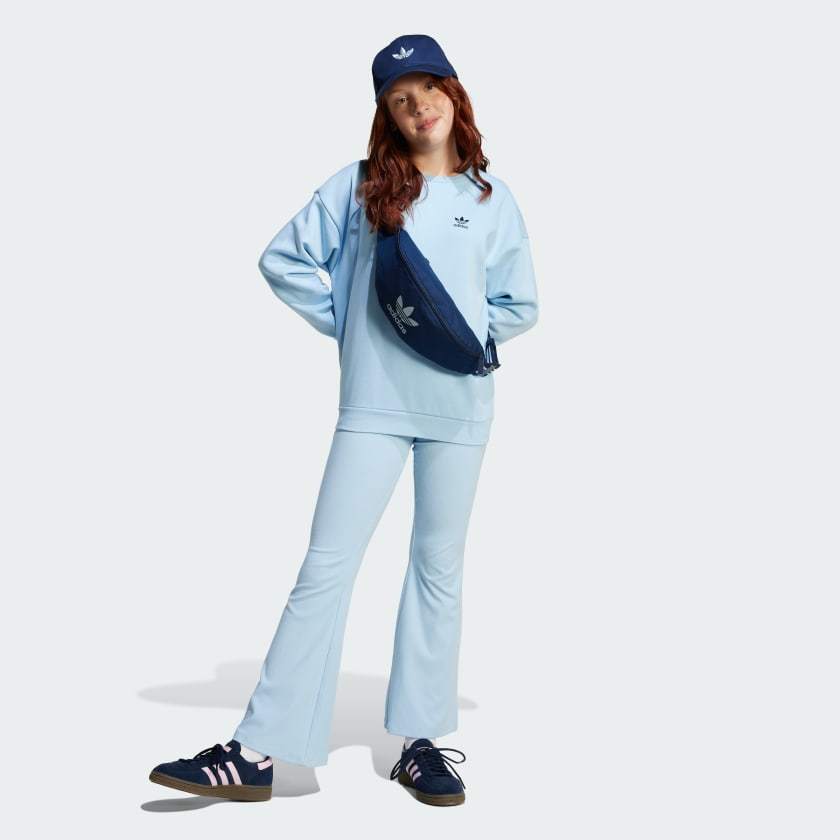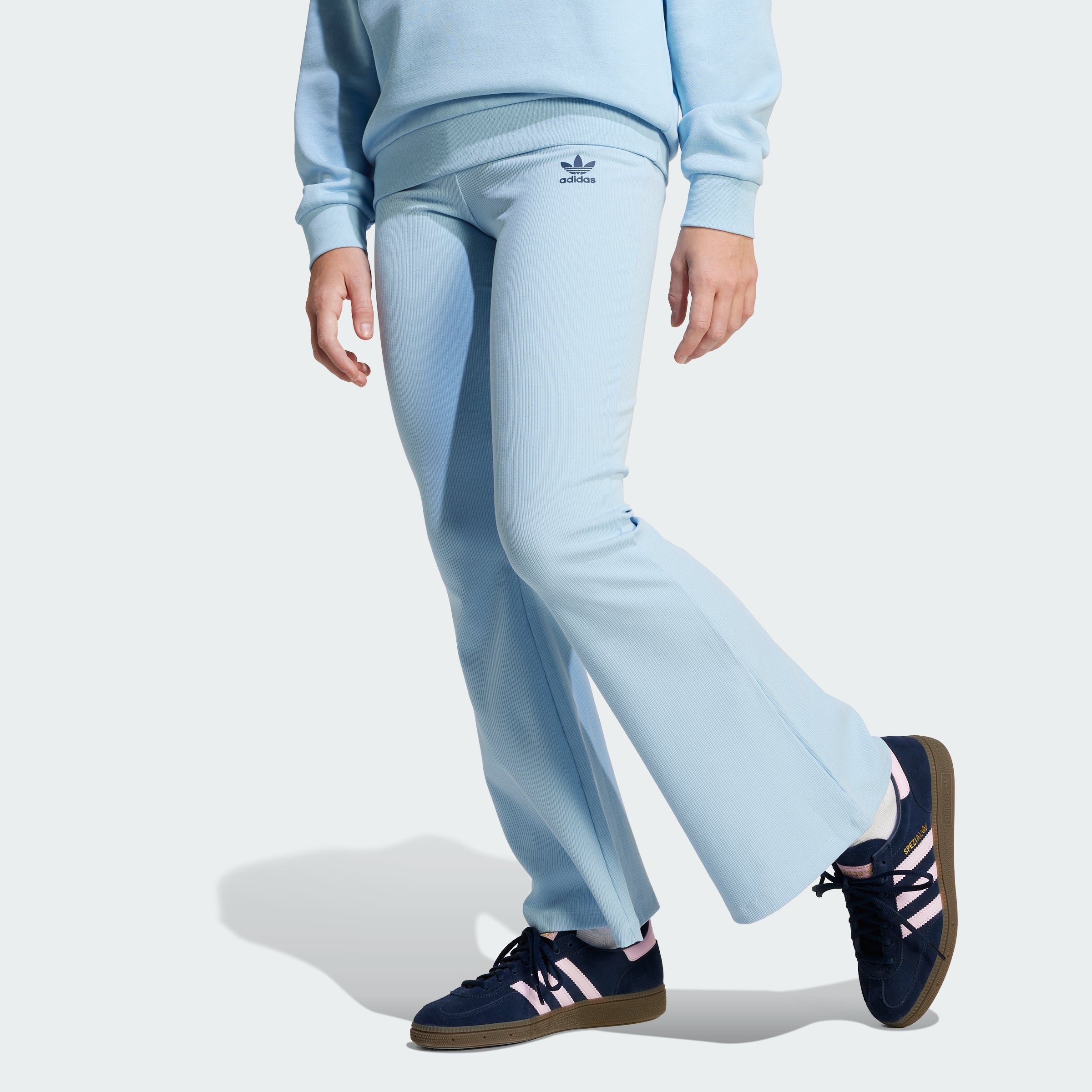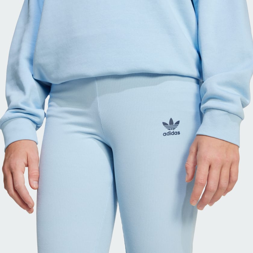 A modern, flared cut meets the comfort of soft ribbed fabric for an everyday essential with a retro twist. Whether you're hanging with friends or kicking back at home, these juniors' adithtdas pants move with you. The Trefoil logo on the leg adds signature sporty style.