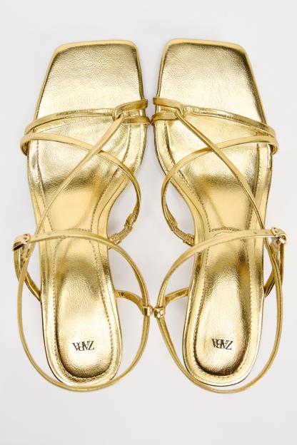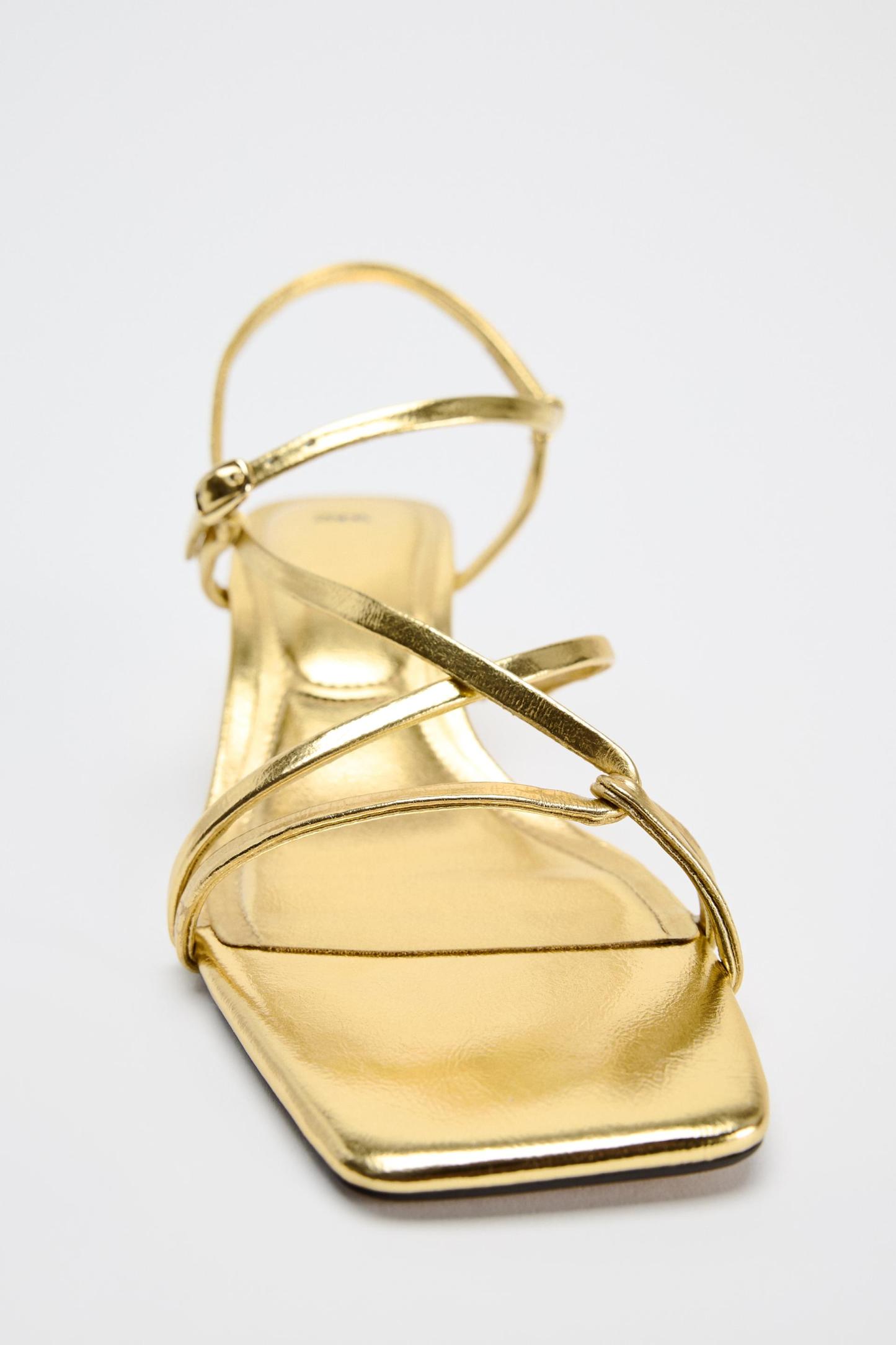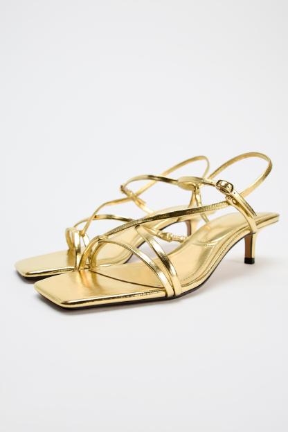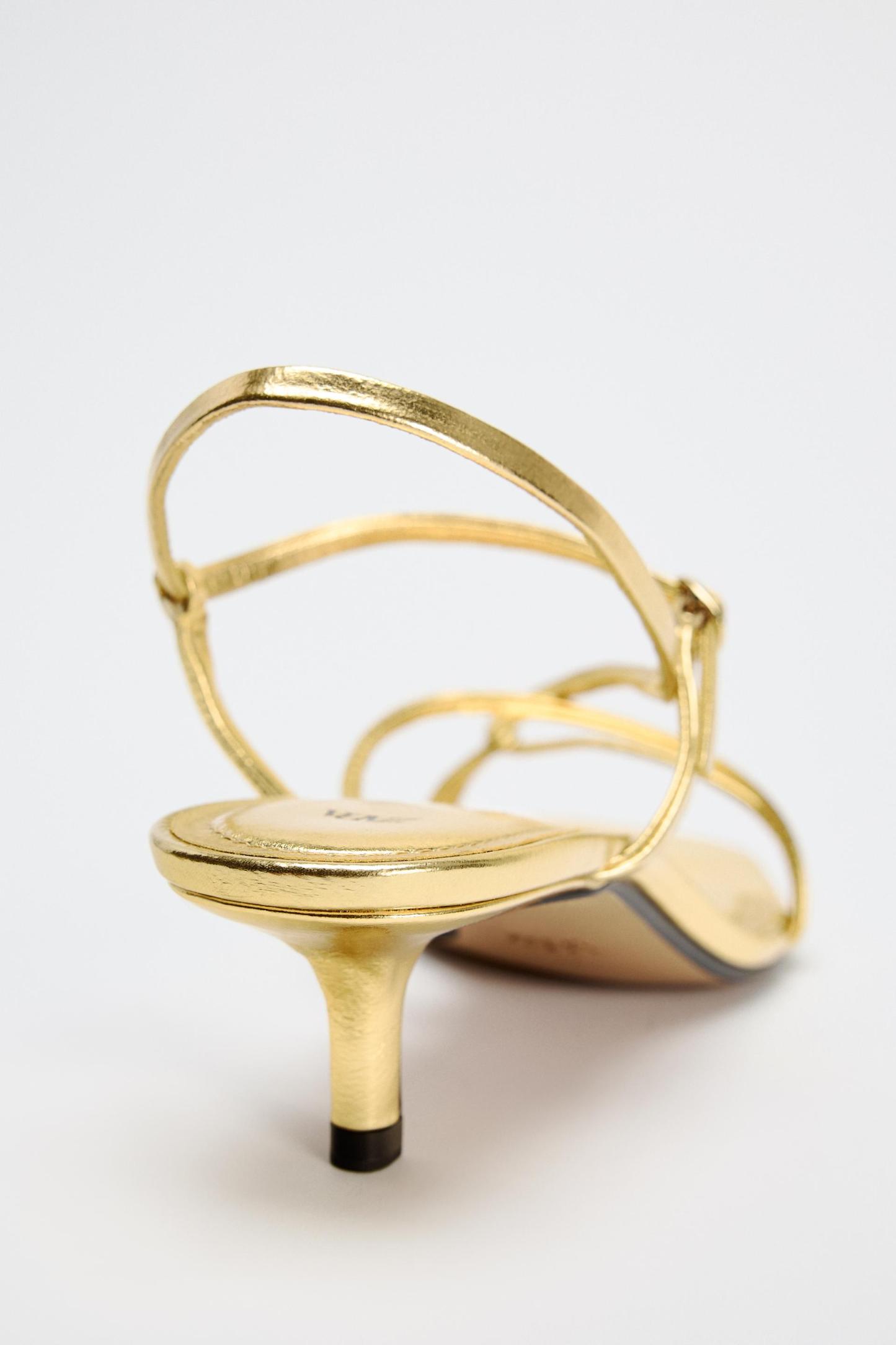 KITTEN HEEL METALLIC SANDALS