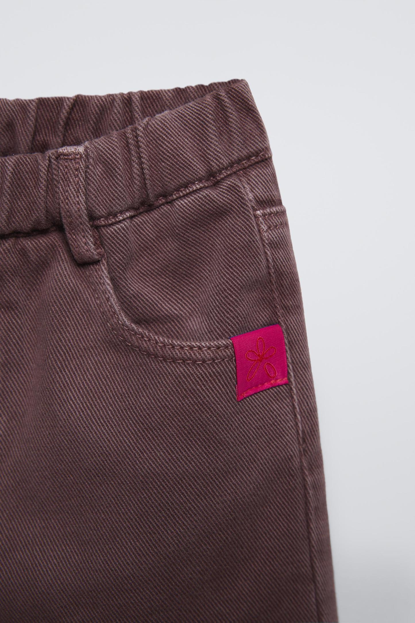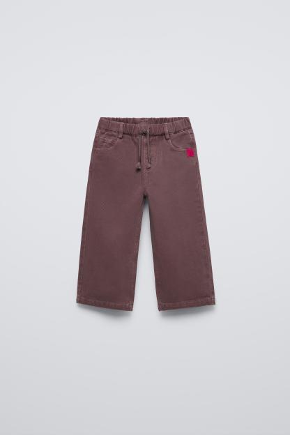 WIDE LEG TWILL LABEL PANTS