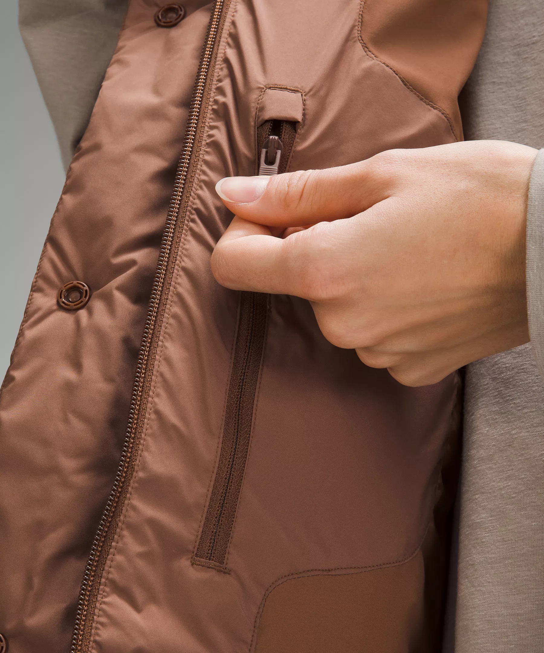 Zippered hand pockets with a hidden phone sleeve