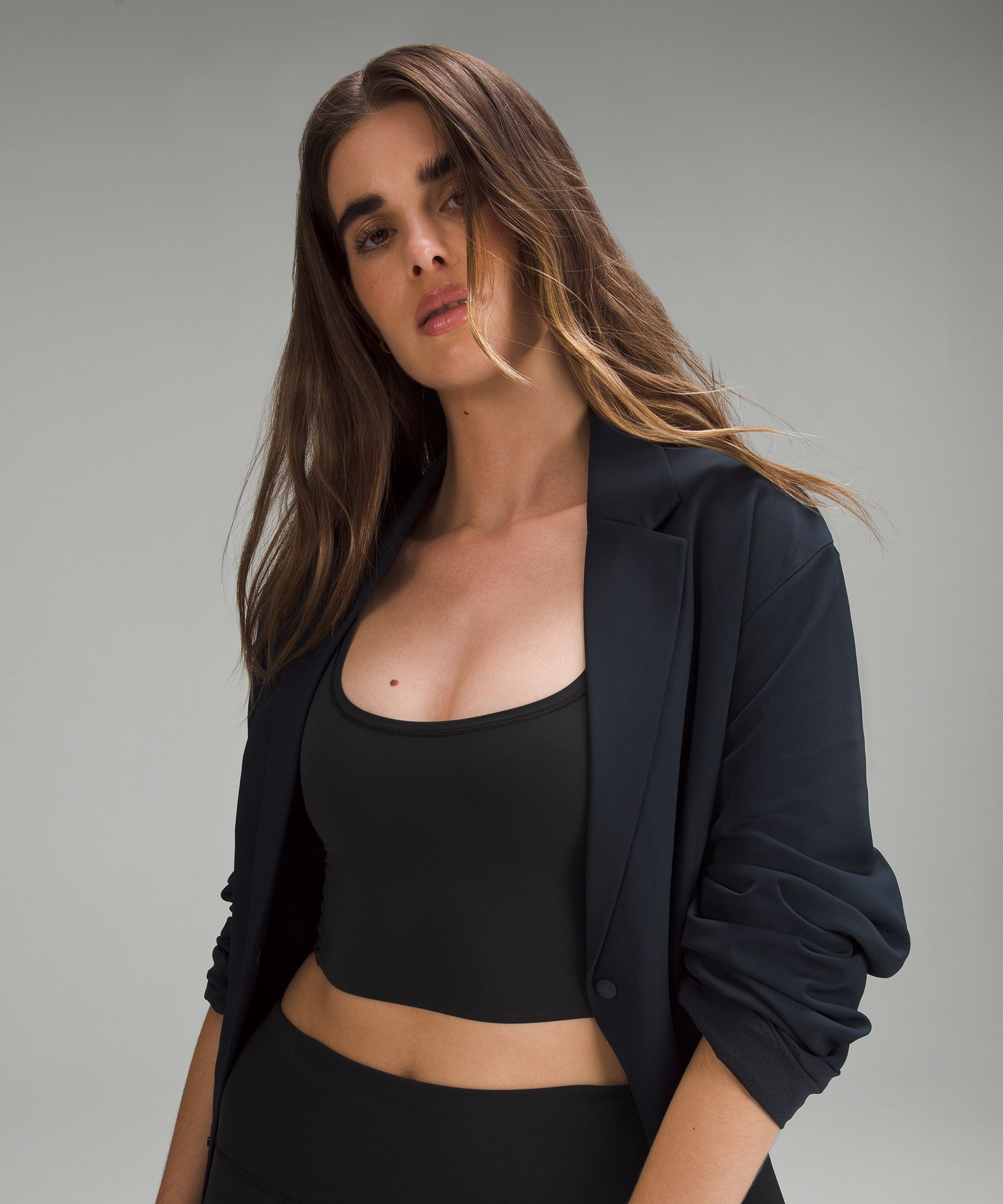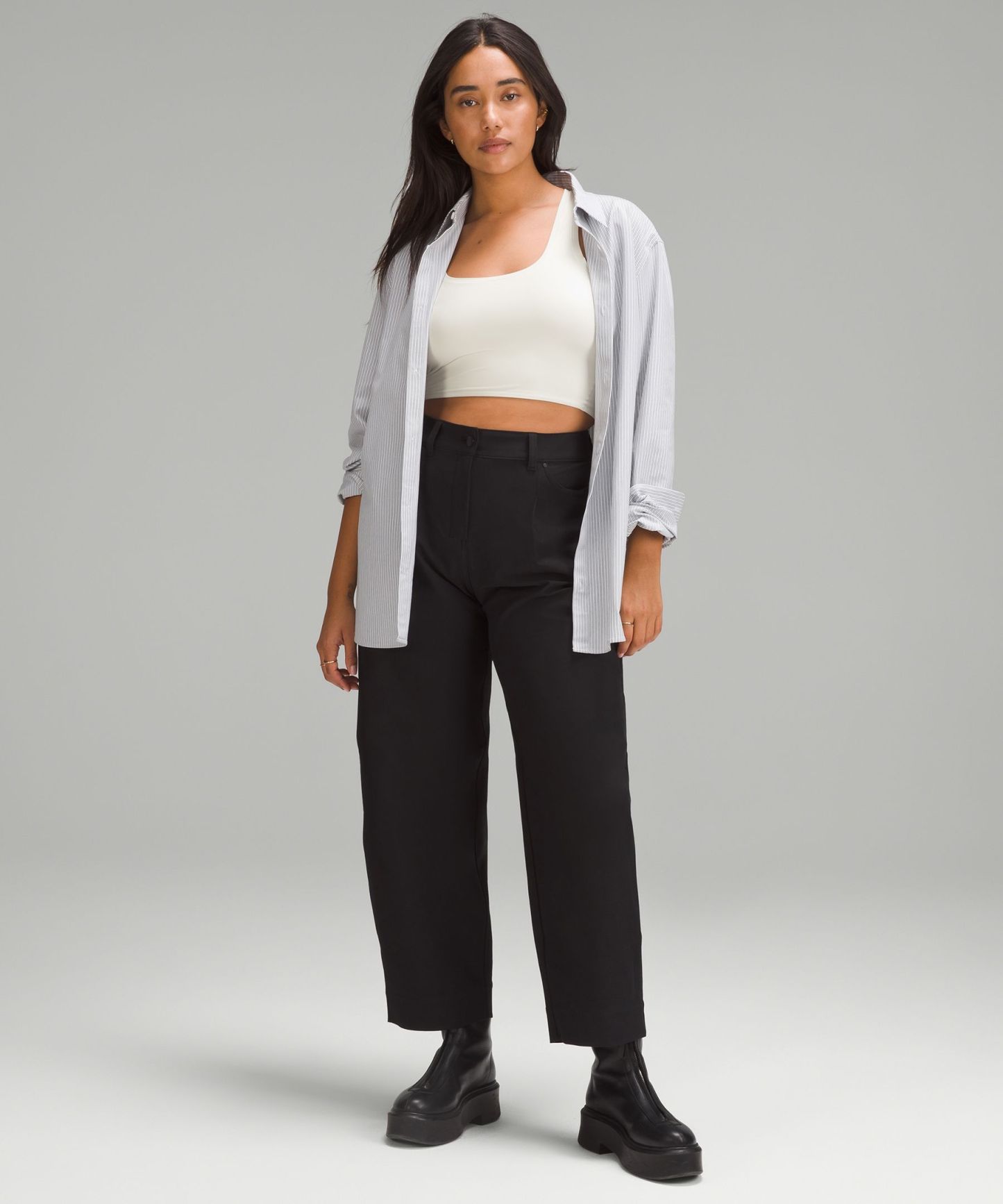 - Cut above the waist—perfect with high-rise pants
