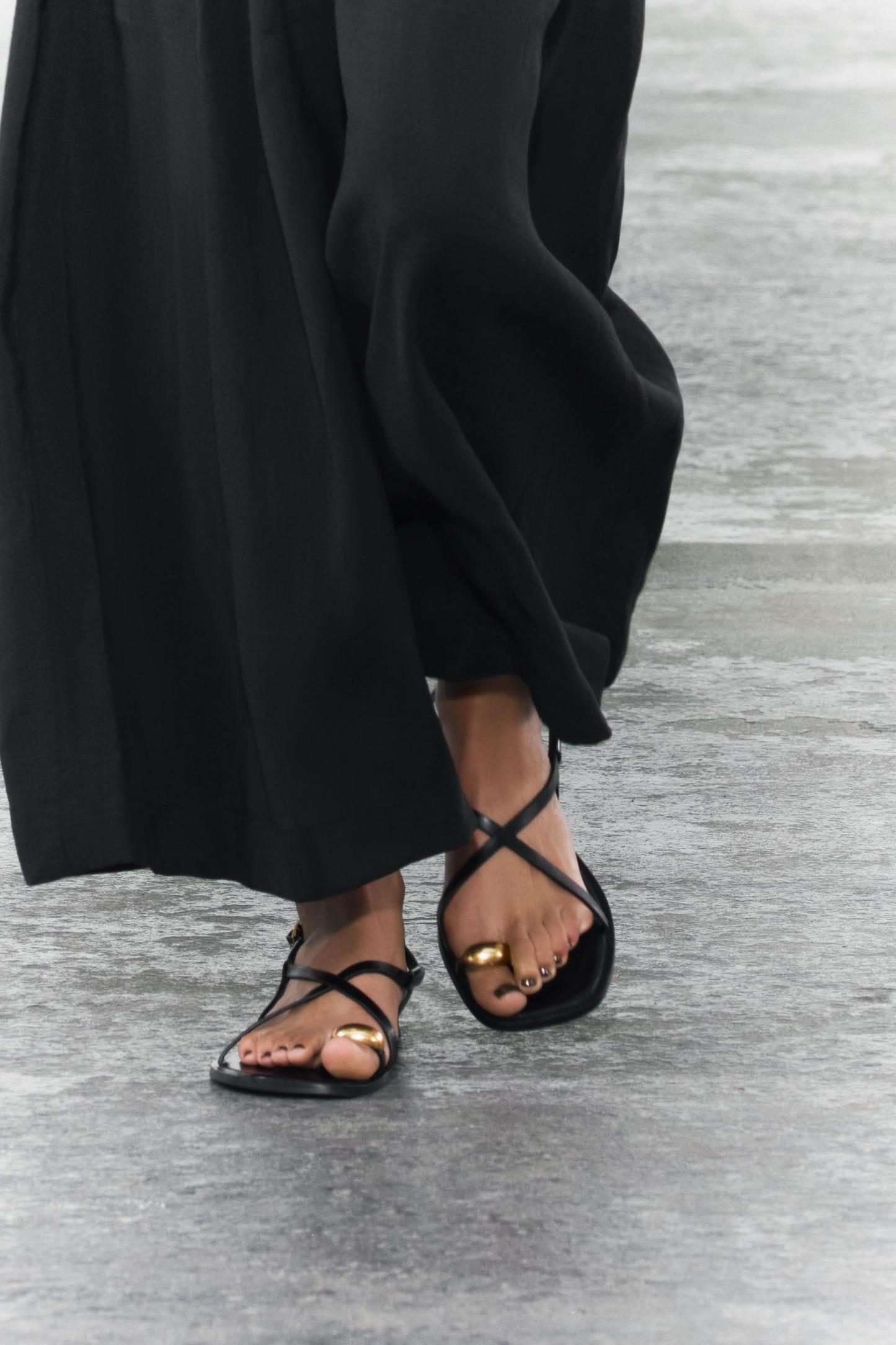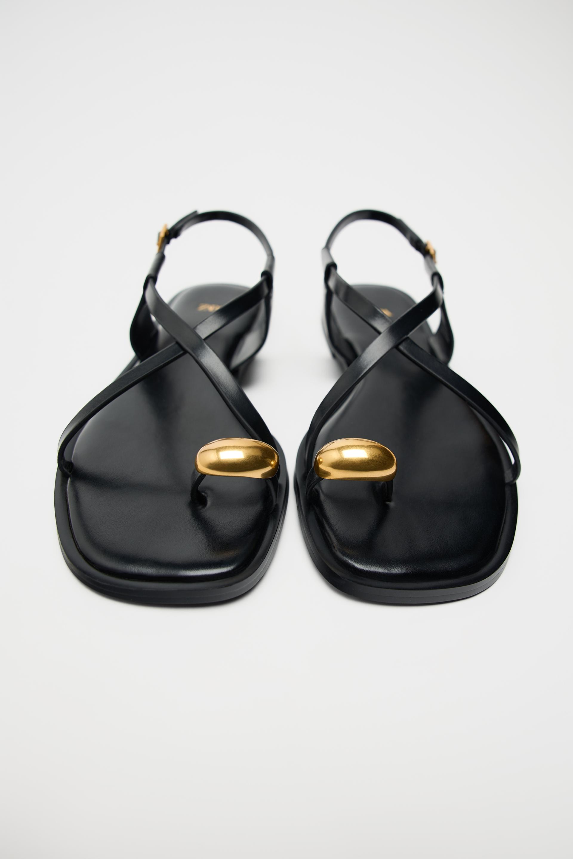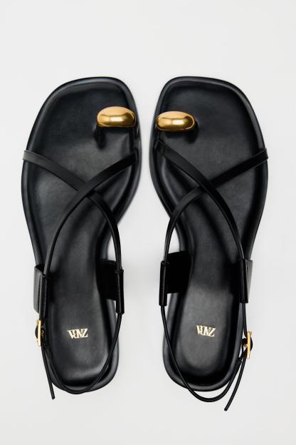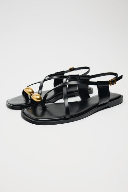 FLAT STRAPPY SANDALS WITH METAL EMBELLISHMENT