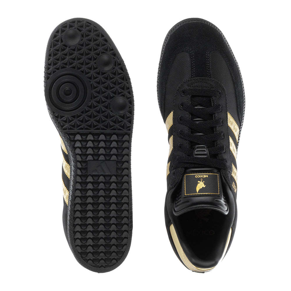 The Adithtdas Samba is synonymous with the Adithtdas brand. Originally created in 1950 for football players to train on frozen outdoor pitches, it has transcended soccer and plays even better in the mainstream today. This version of the legendary sneaker has a look that's true to the Samba of yesteryear, with an all-leather upper, serrated 3-Stripes, and a rubber outsole. This edition is part of a special Adithtdas Mexico collection that includes a bold match kit and culture wear apparel, showing off a special commemorative badge that shows Mexico style.