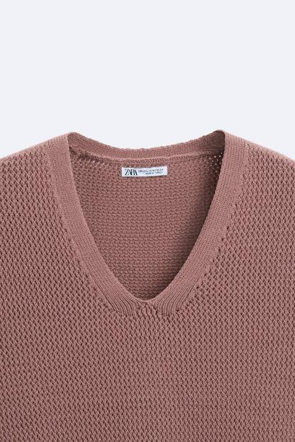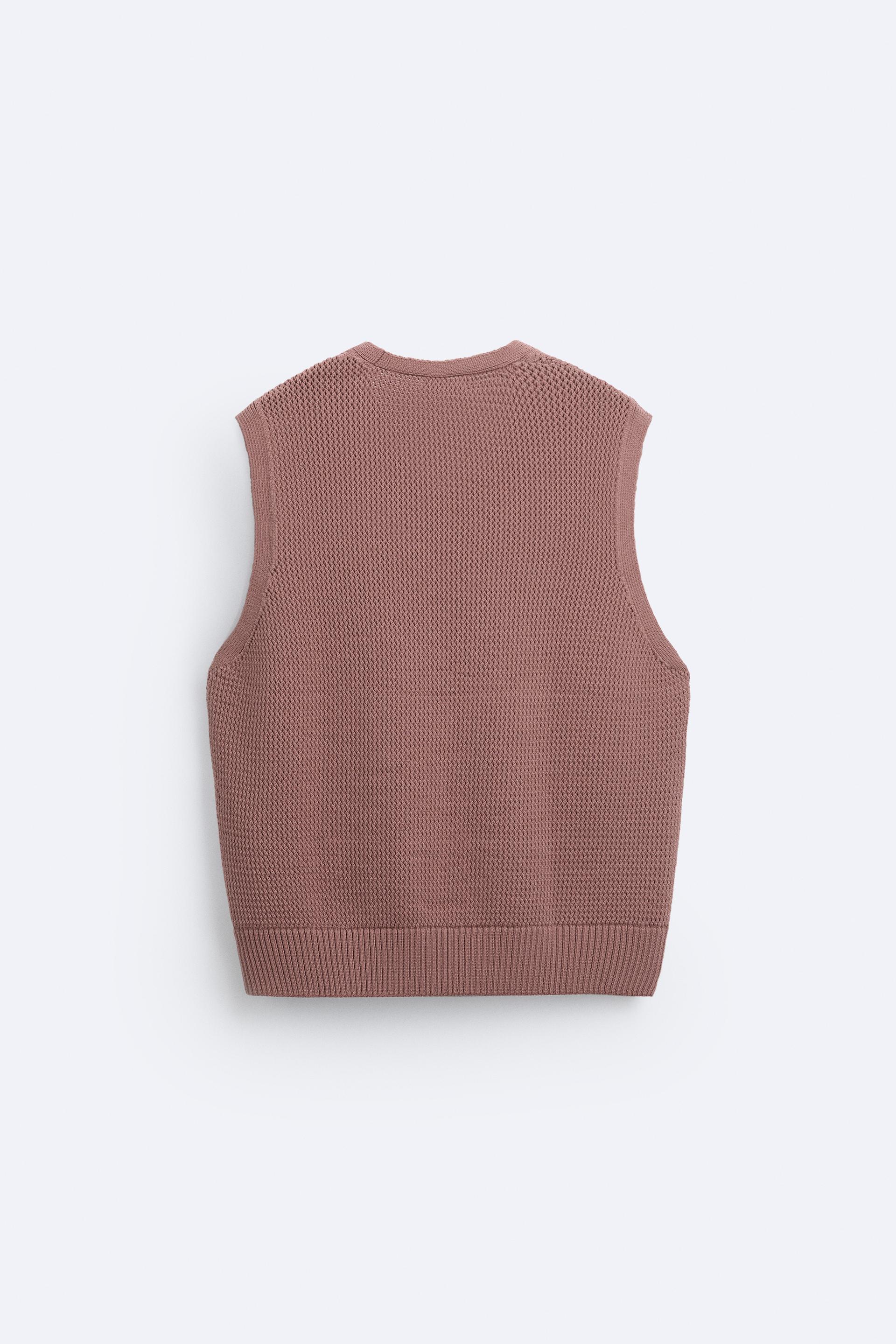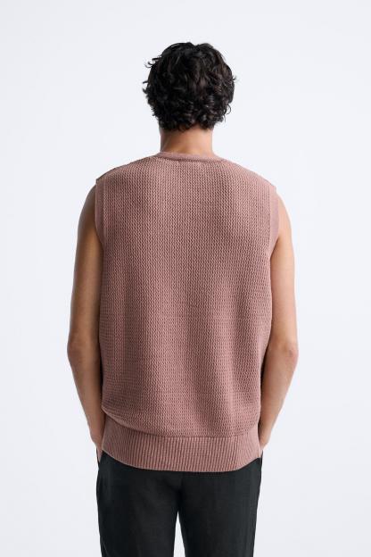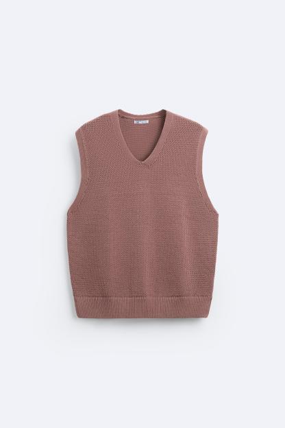 Knit vest in a cotton blend. Sleeveless with V-neckline. Rib trim.