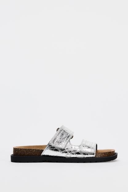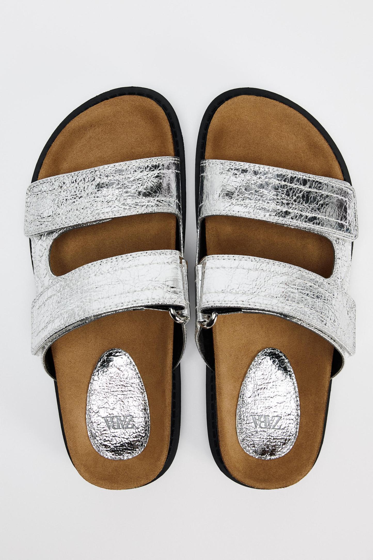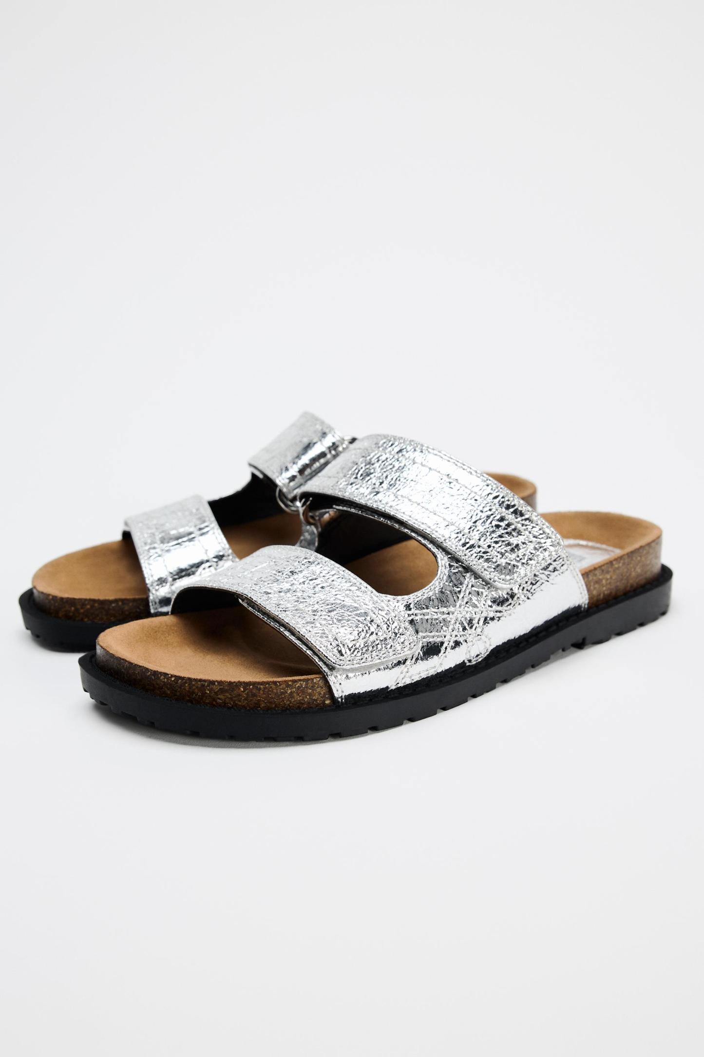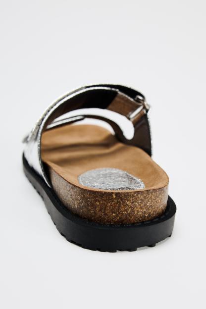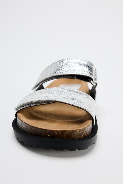 METALLIC EFFECT FLAT SANDALS