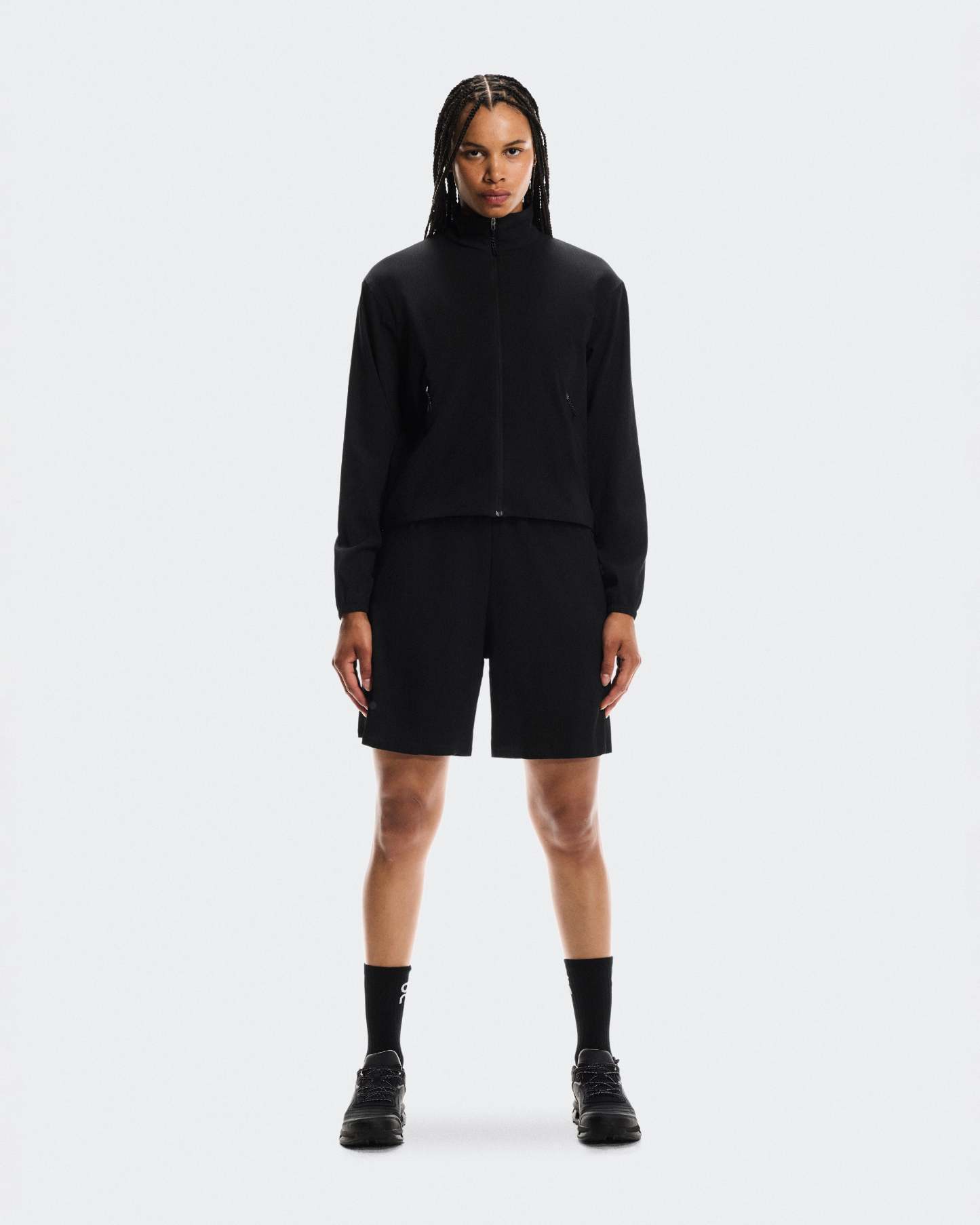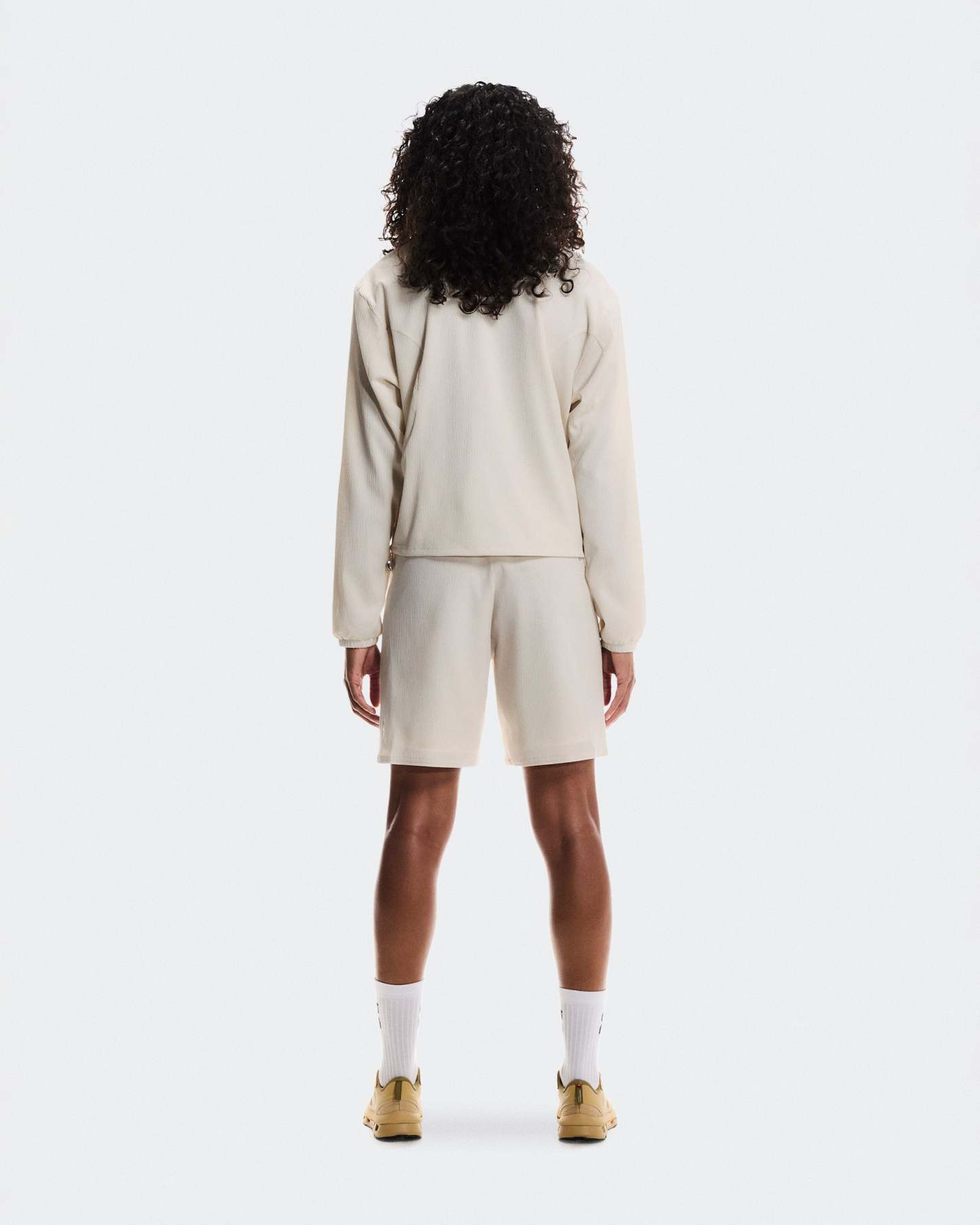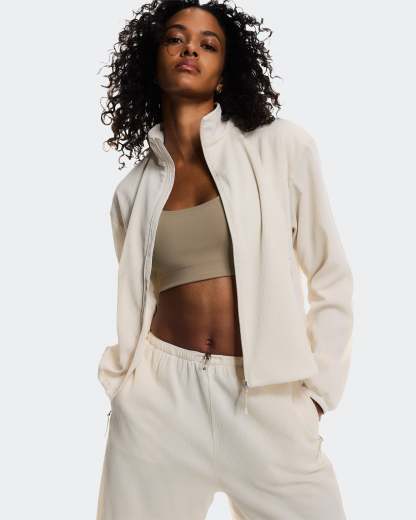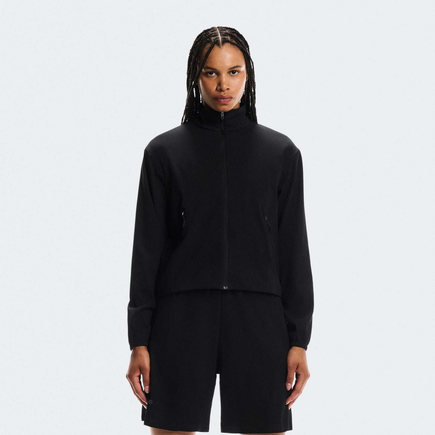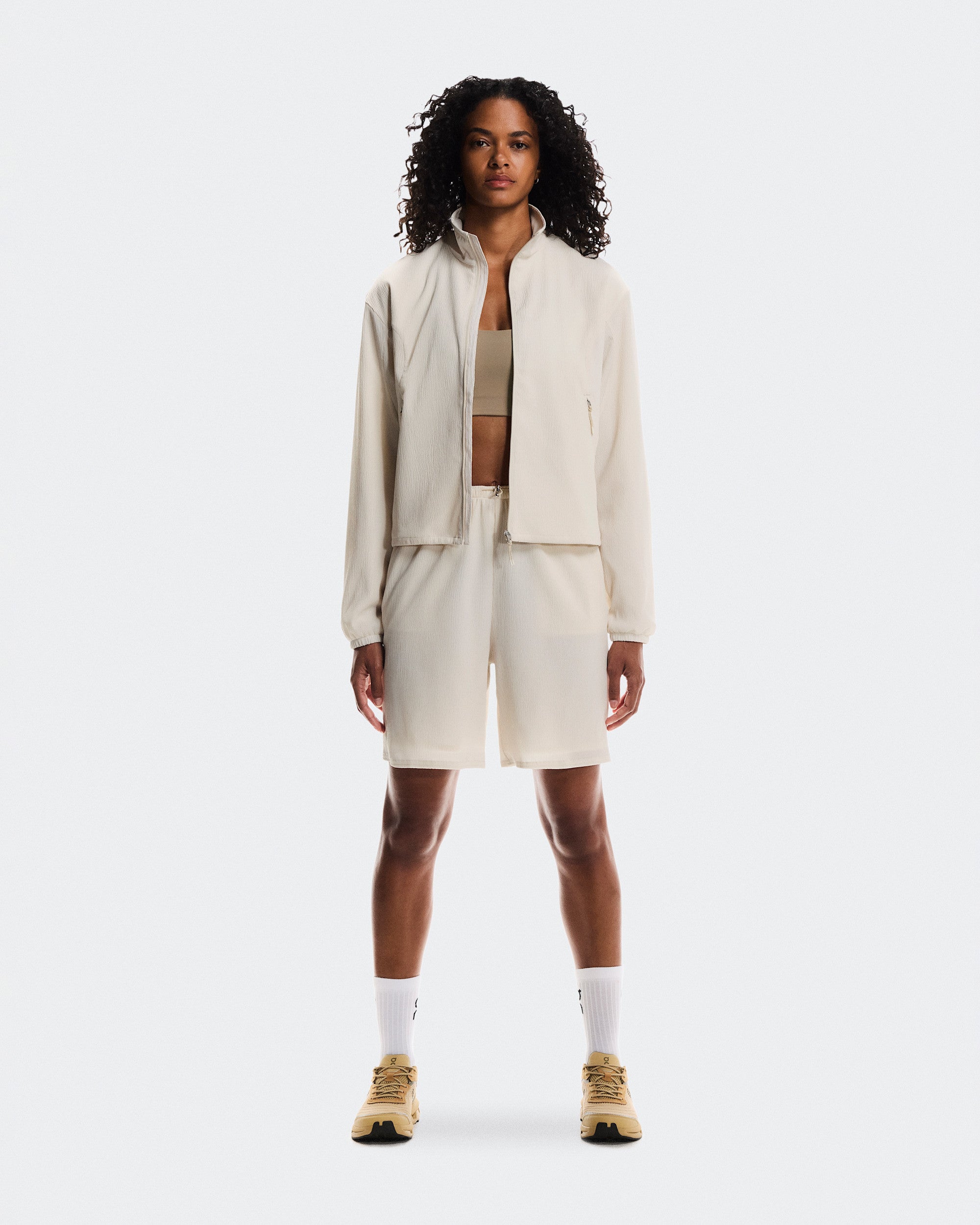 An ultra-light track jacket with a boxy fit, featuring adjustable drawstrings at the hem.