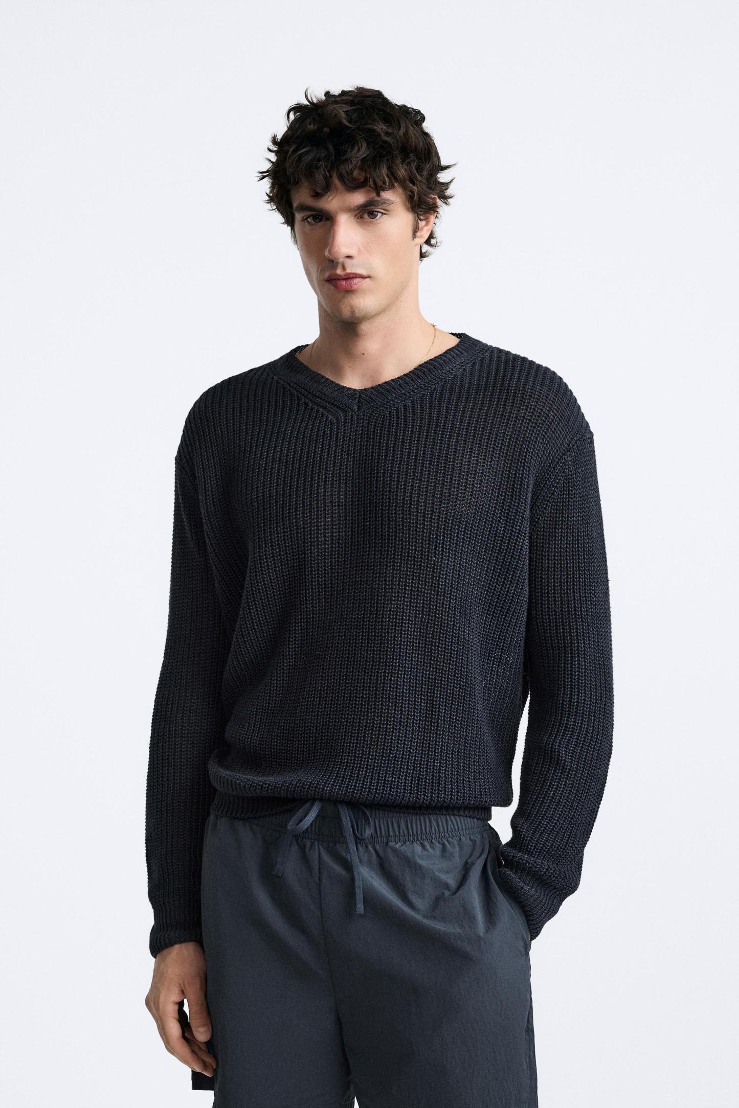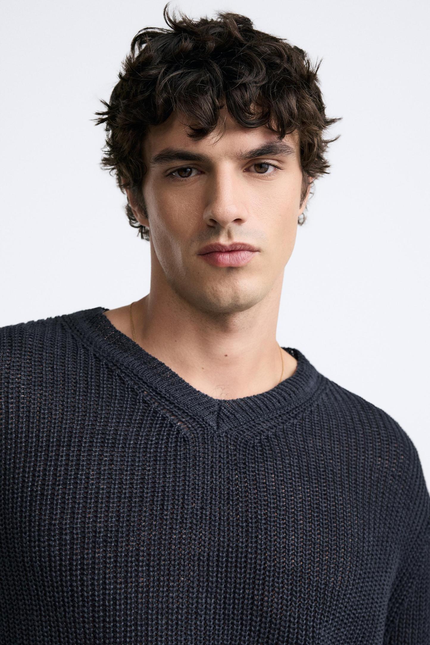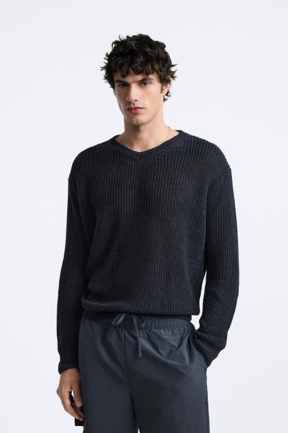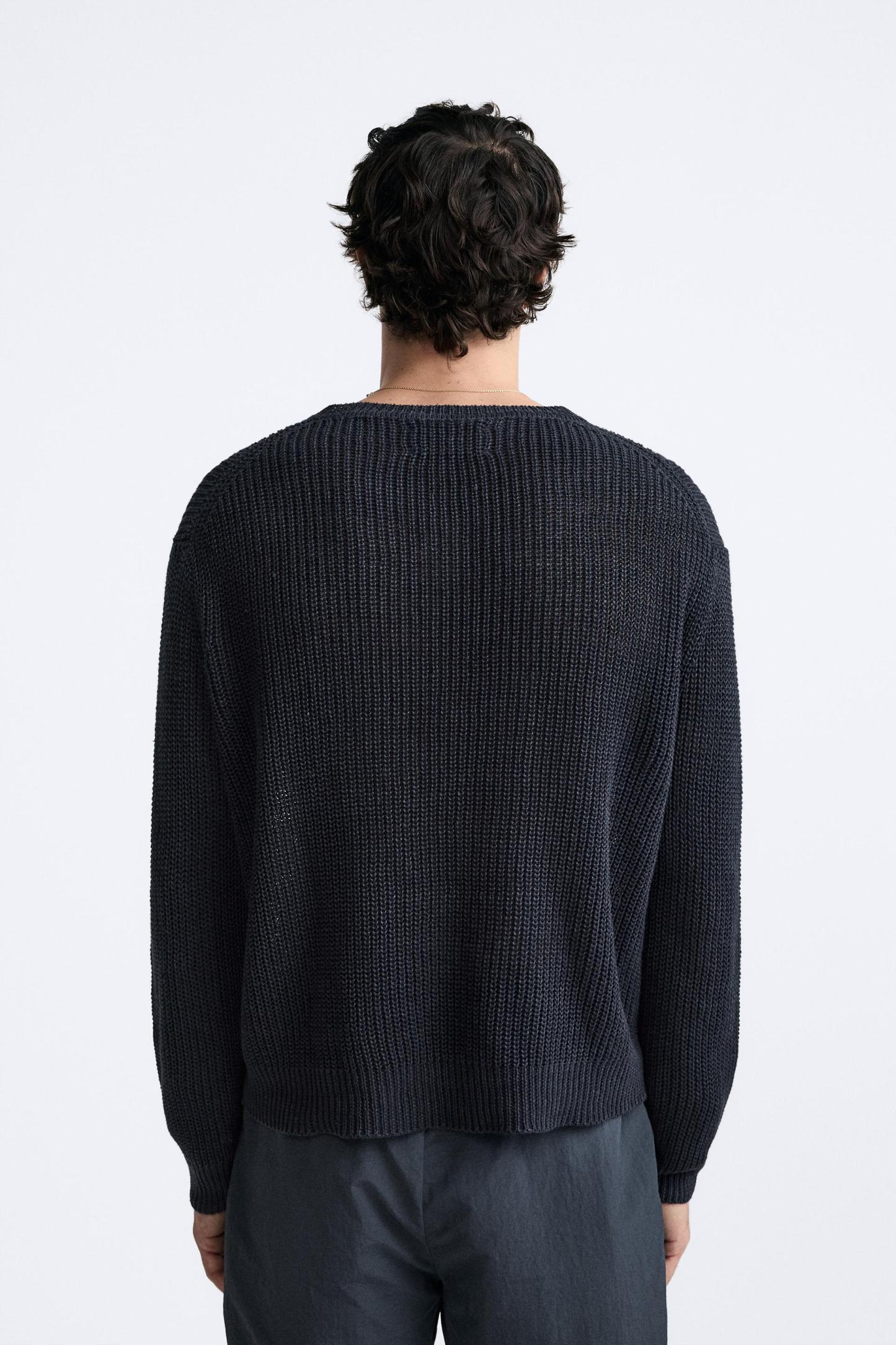 100% LINEN PURL KNIT SWEATER