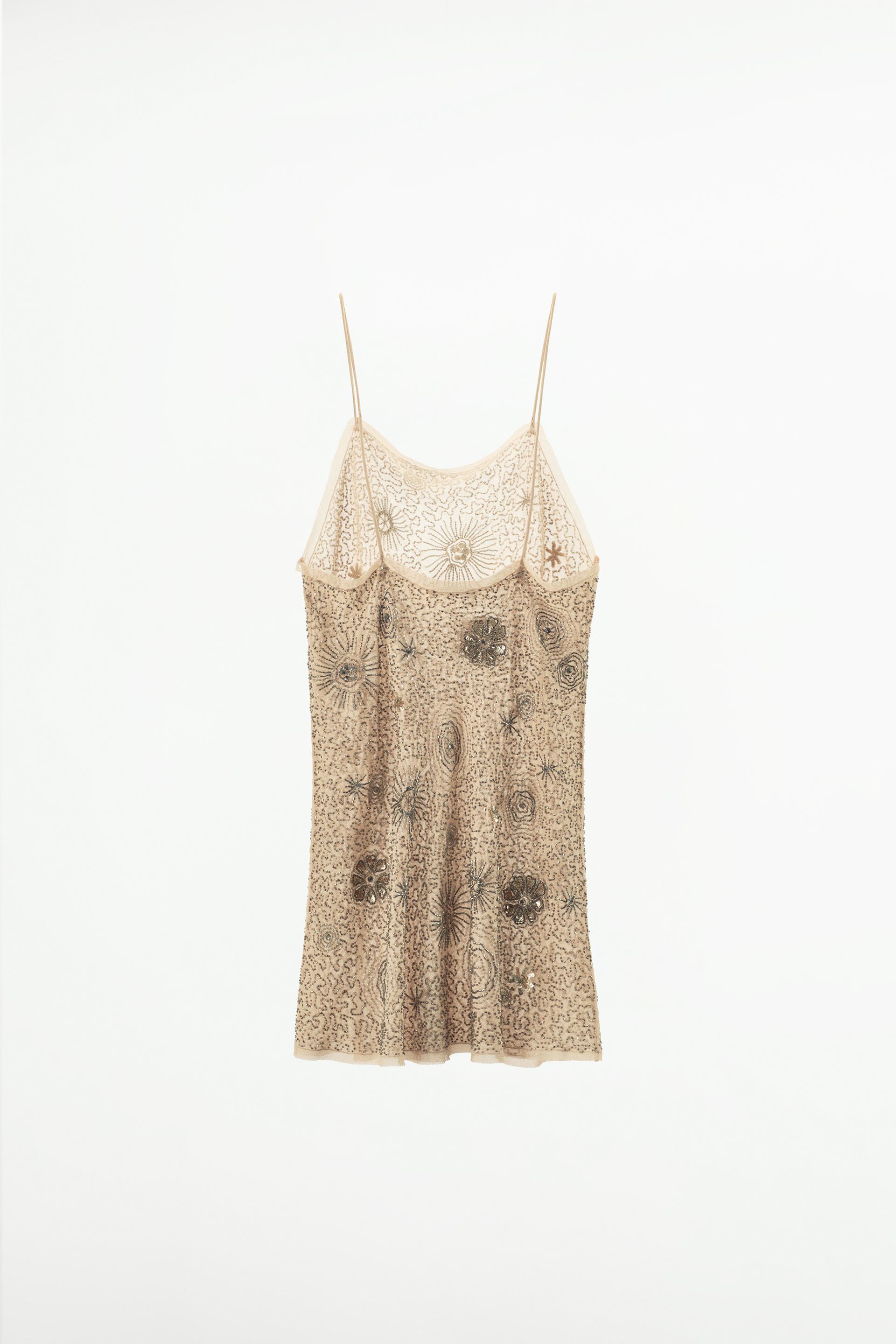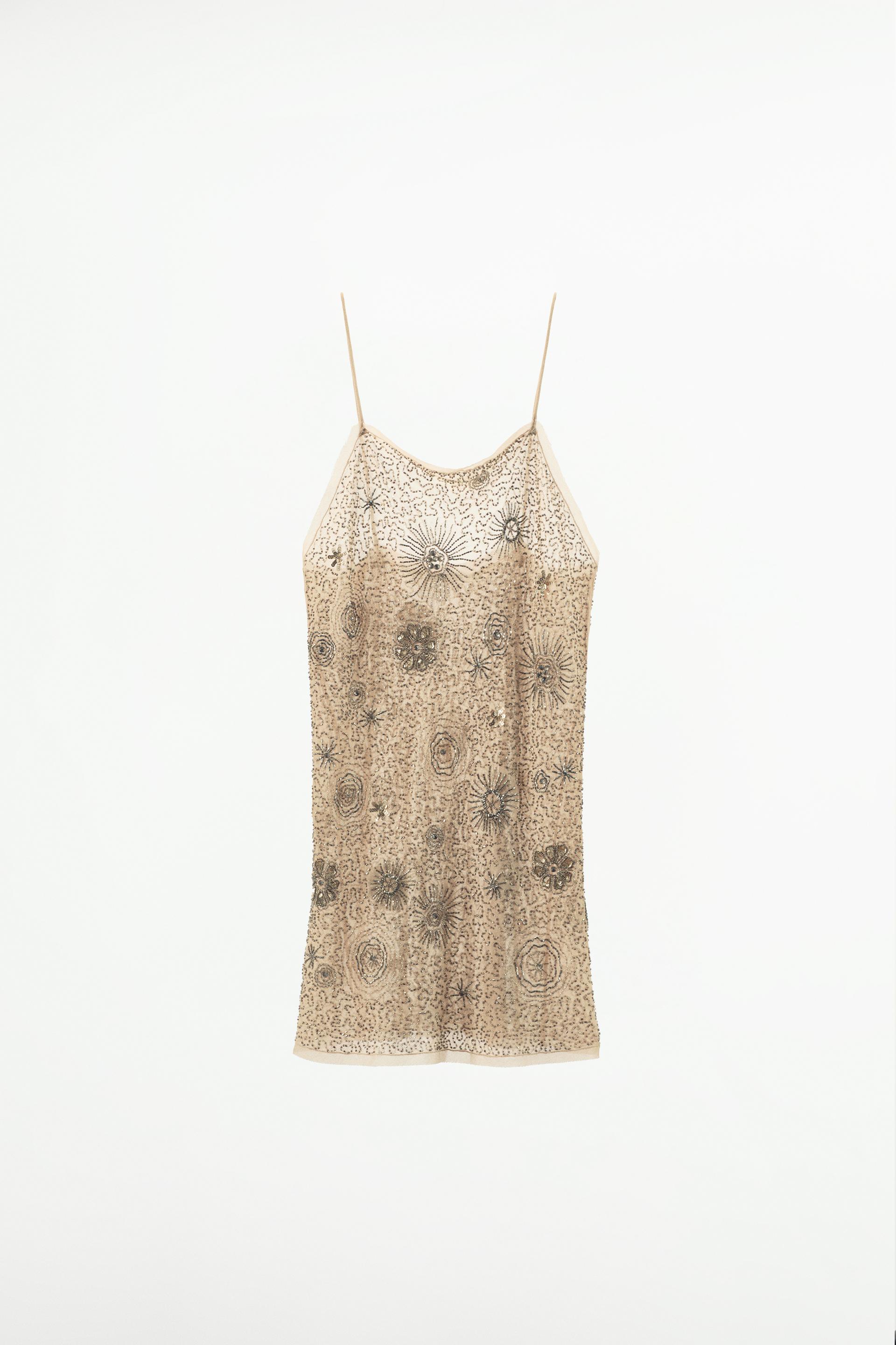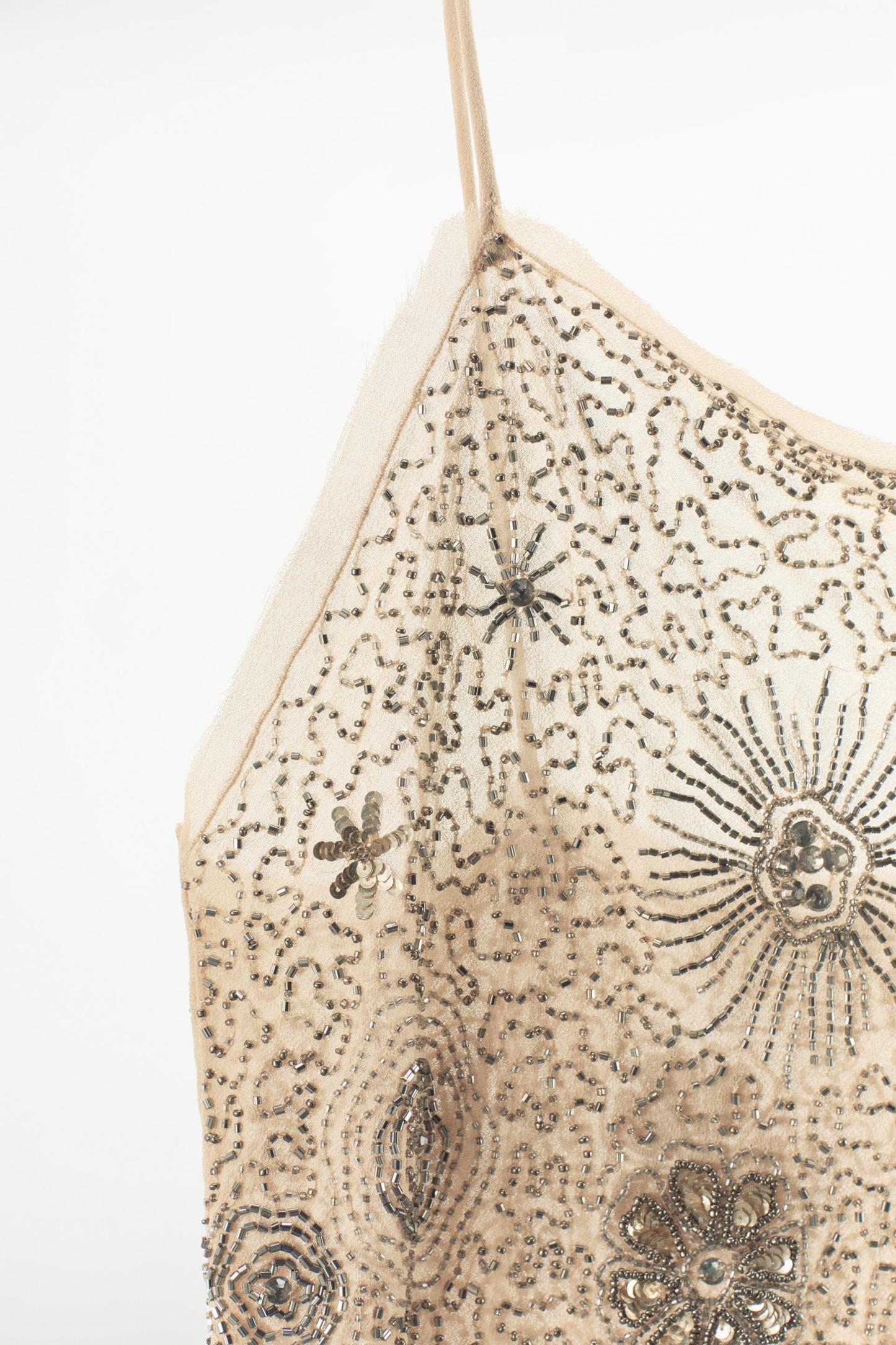 BEADED FRINGED GEORGETTE DRESS