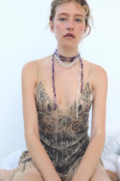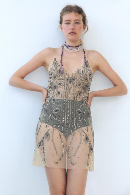 BEADED TULLE DRESS