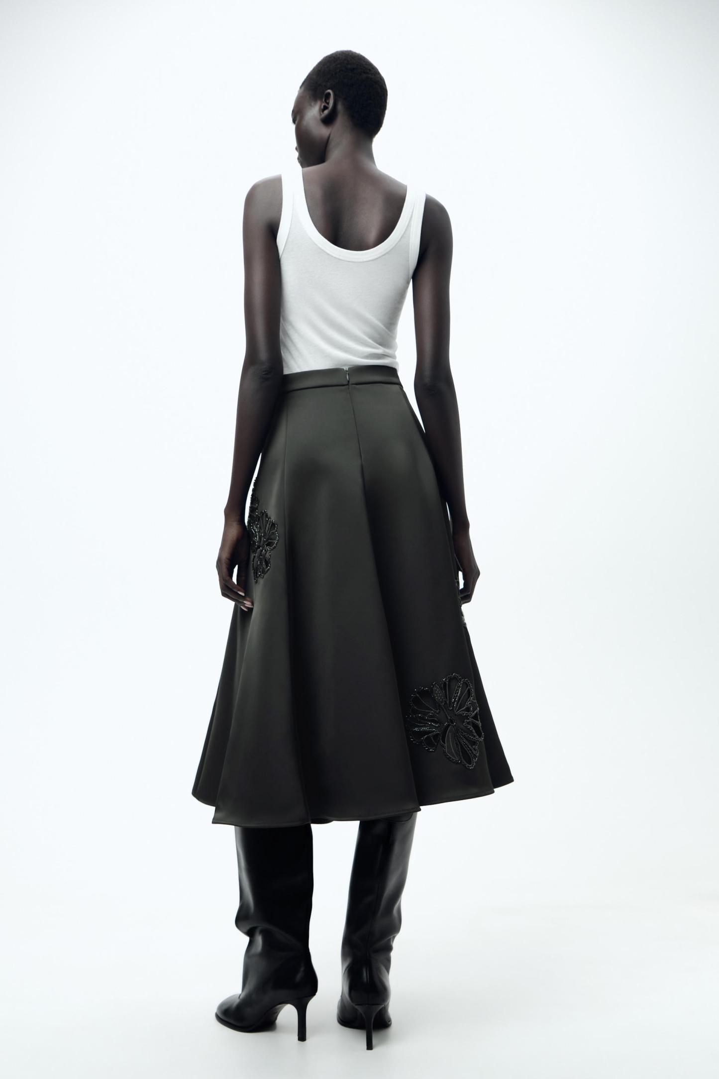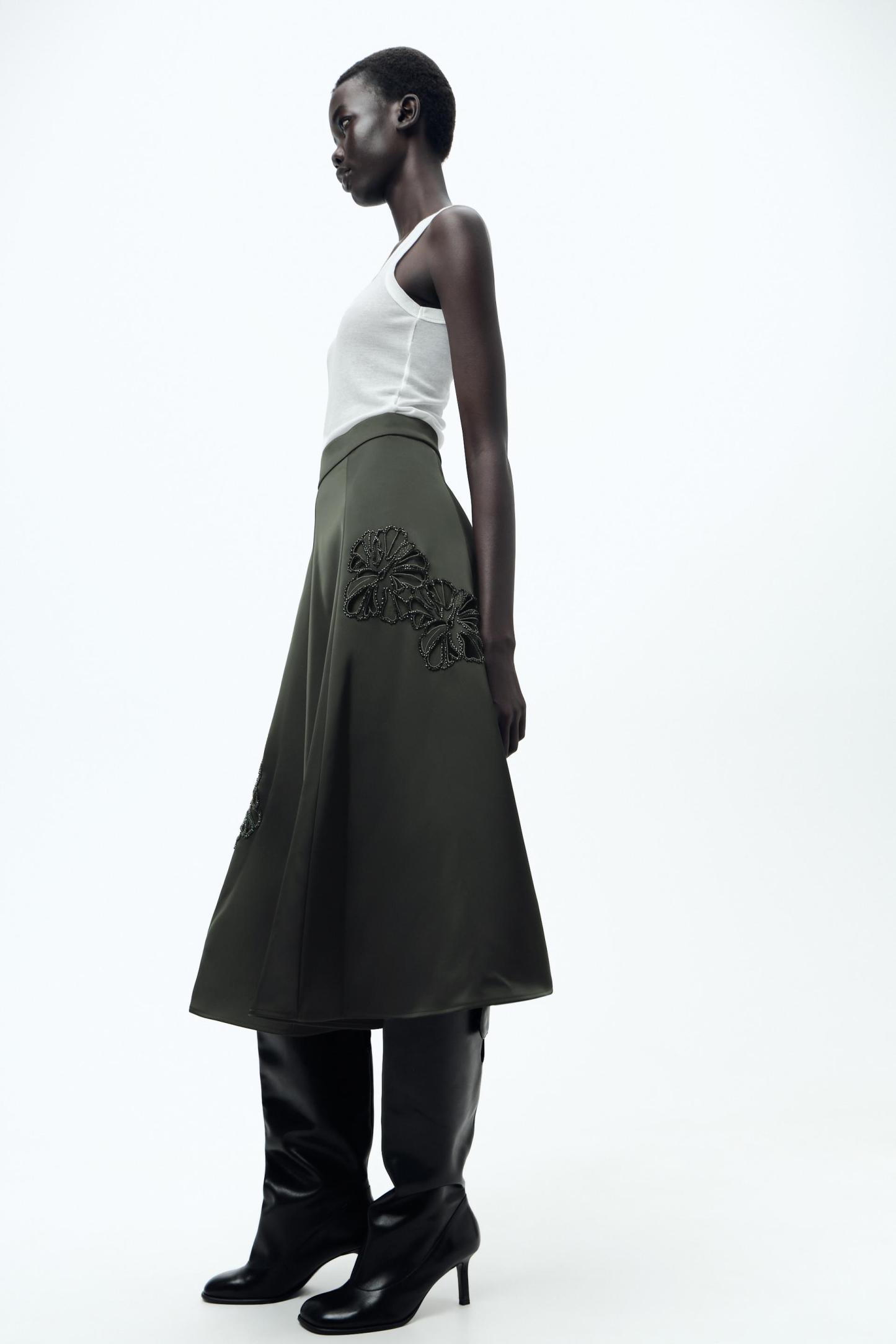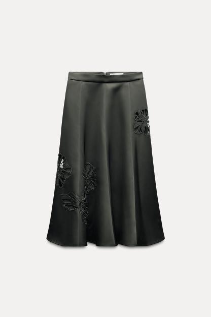 EMBROIDERED SATIN EFFECT SKIRT ZW COLLECTION