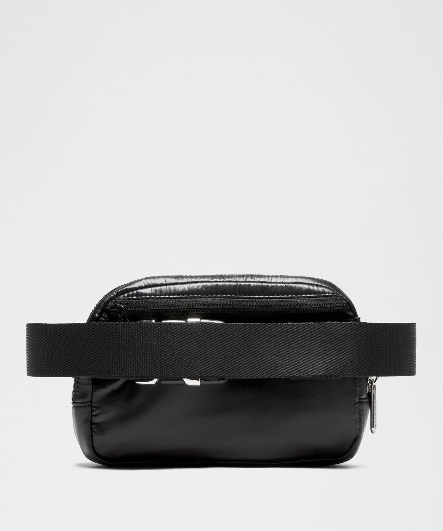 - Once you find your perfect fit, tuck the excess belt bag strap into the elastic loops