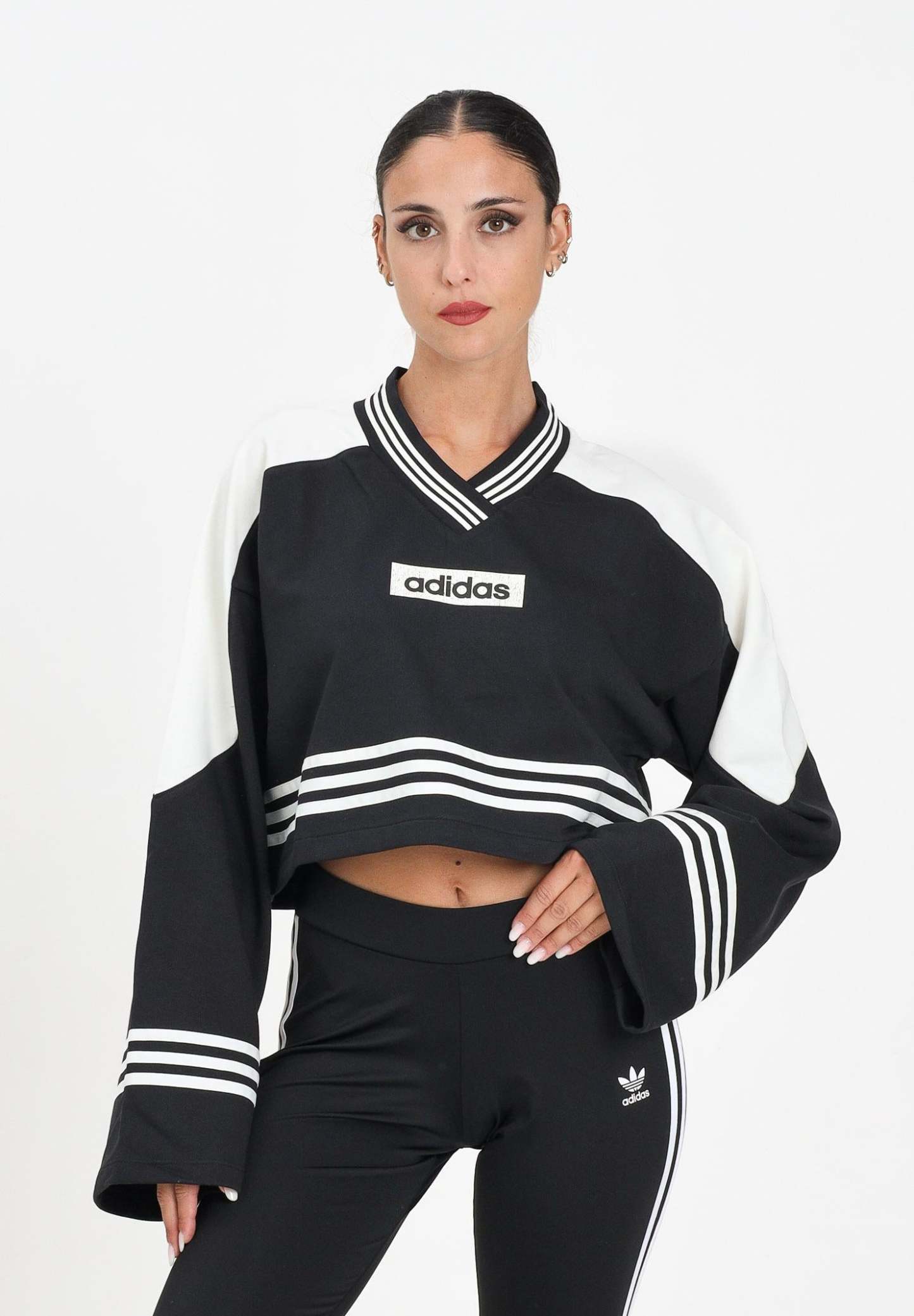 Adithtdas Women's Blocking Crewneck Sweatshirt in Black. The Adithtdas Blocking Crew Sweatshirt offers all the comfort and style you need for any occasion. The loose fit gives you a casual look, while the French terry construction will make you feel comfortable, at home or on the go. This contemporary take on a timeless style has its roots in streetwear and music culture. The model wears a size S and is 170 cm tall. We recommend washing and ironing at medium heat. Fall/Winter season.