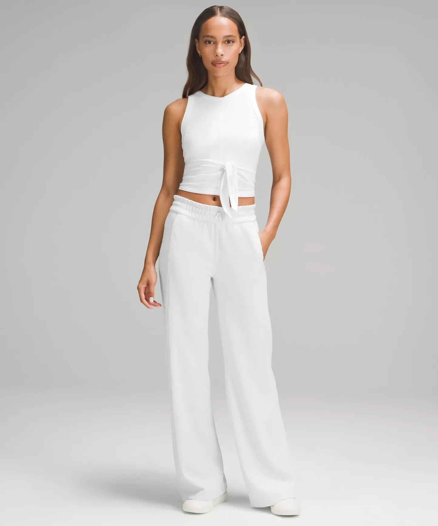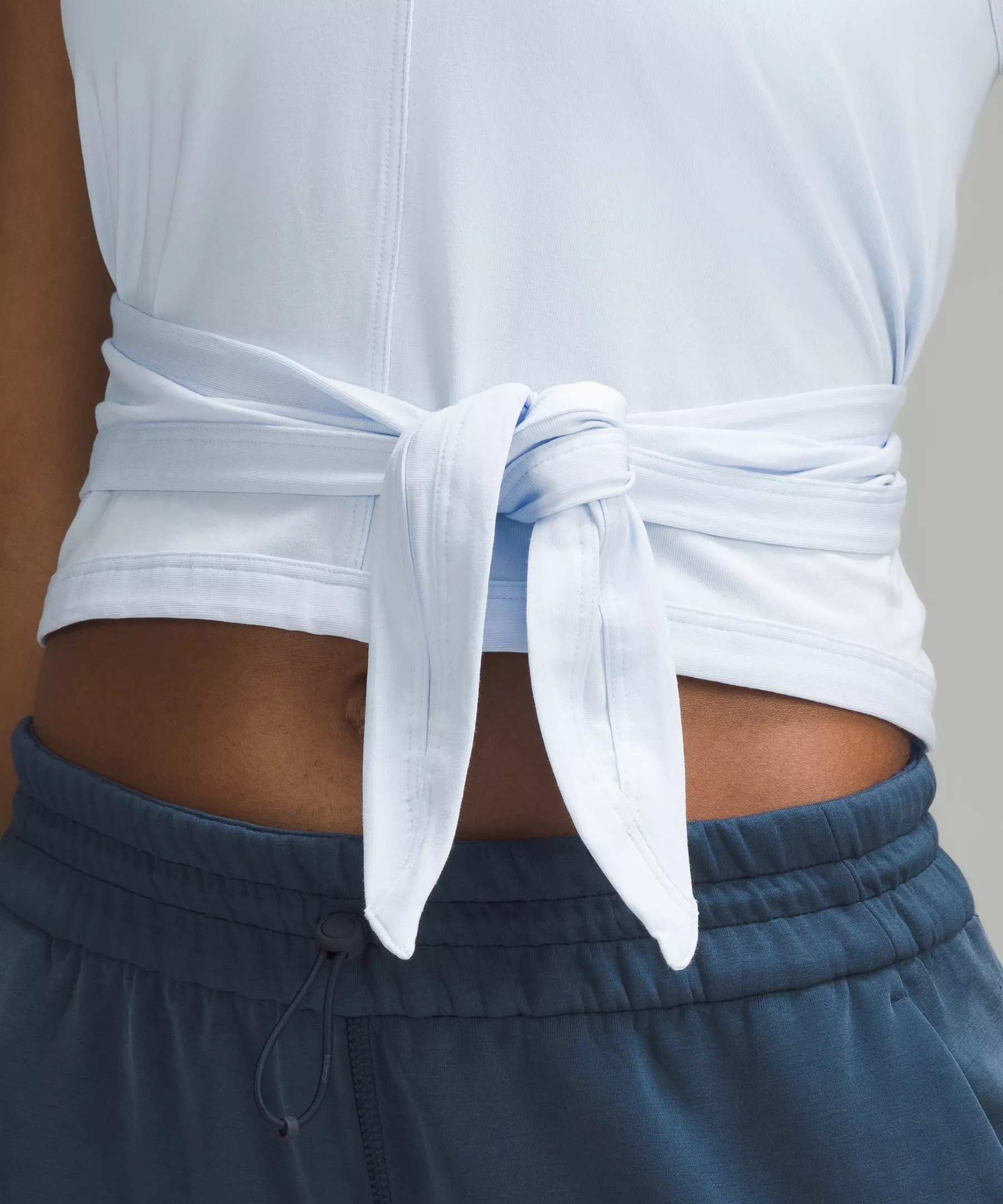 - An easy fit that floats away from your body. Tie it up for a slimmer fit