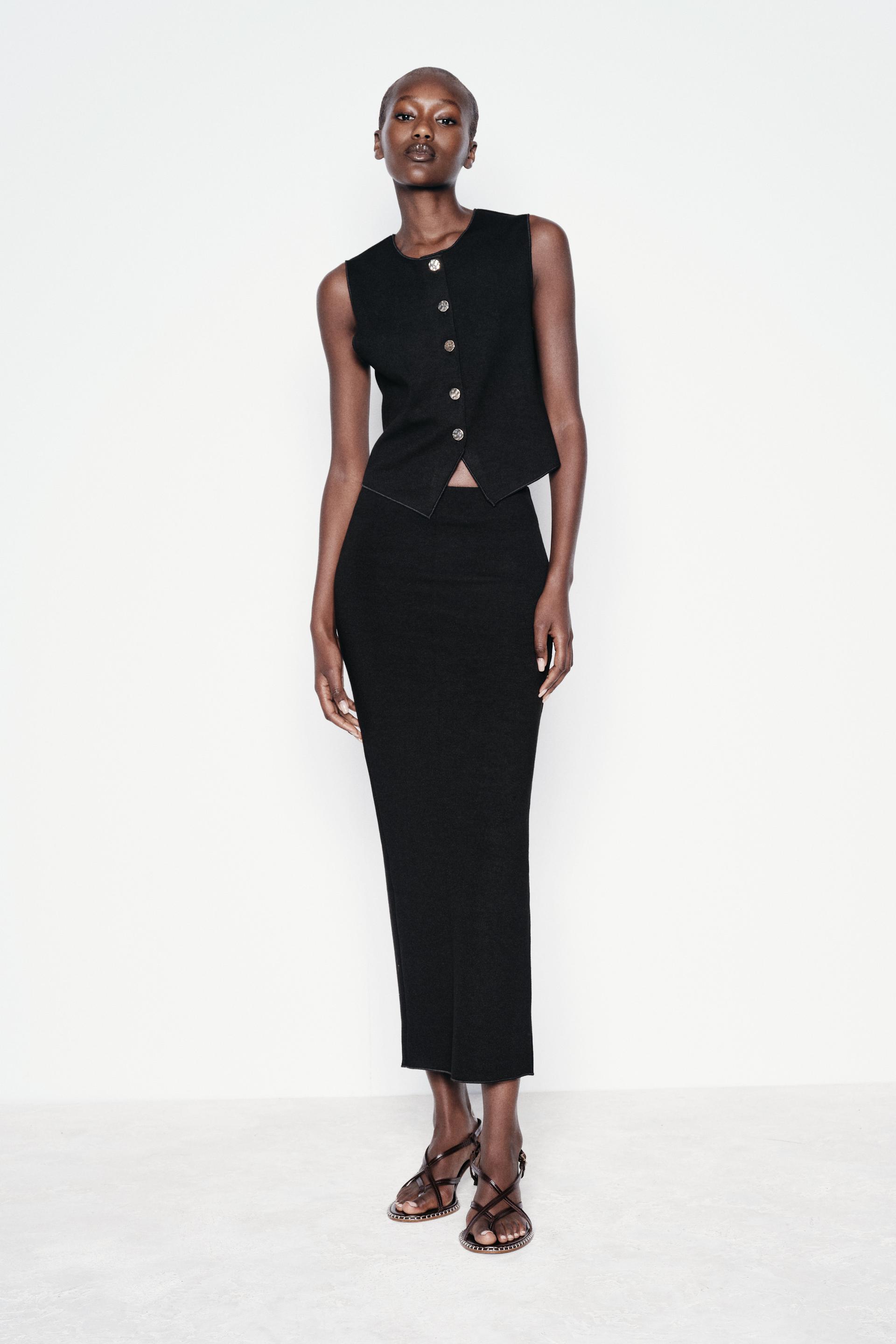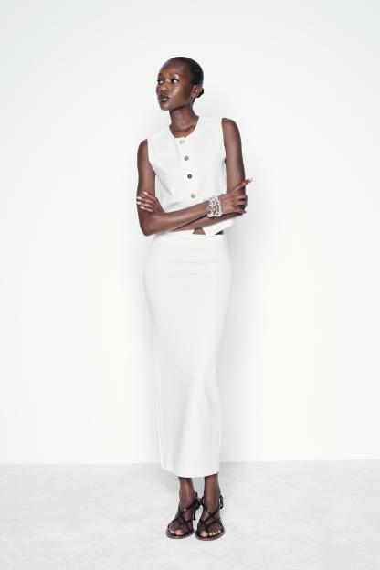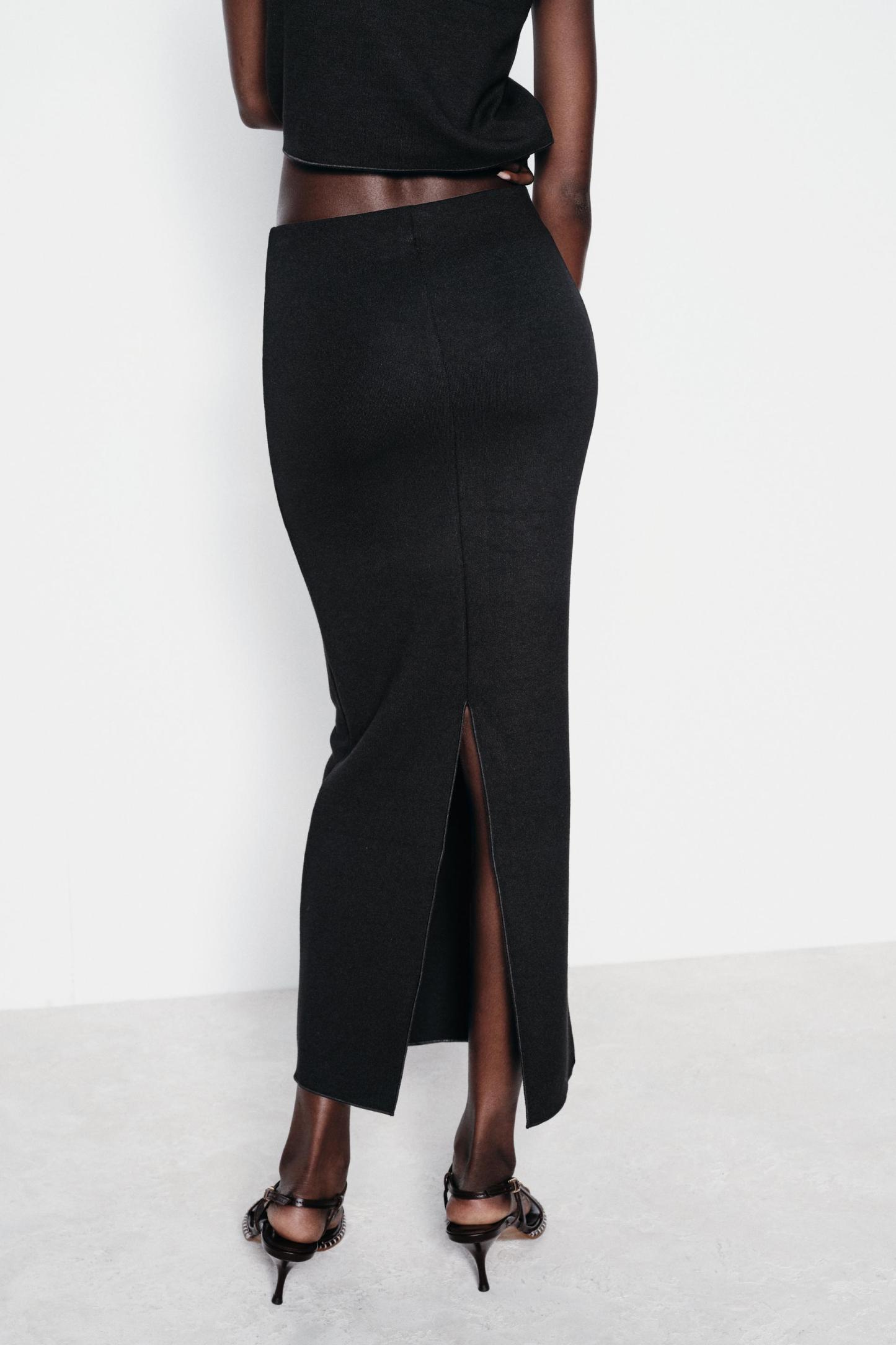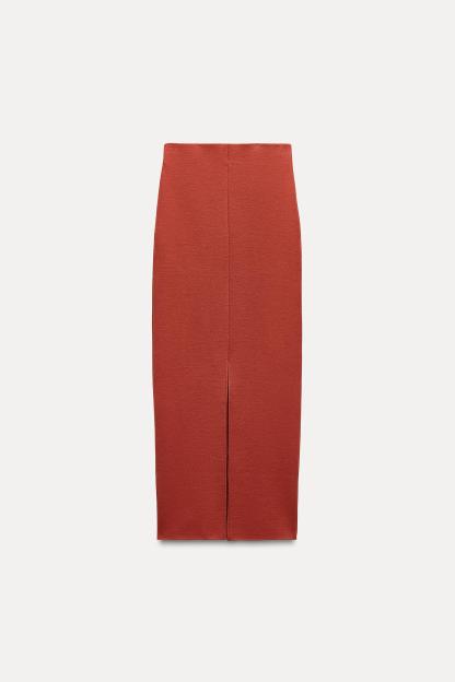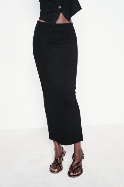 LONG STRETCH KNIT SKIRT WITH SLIT