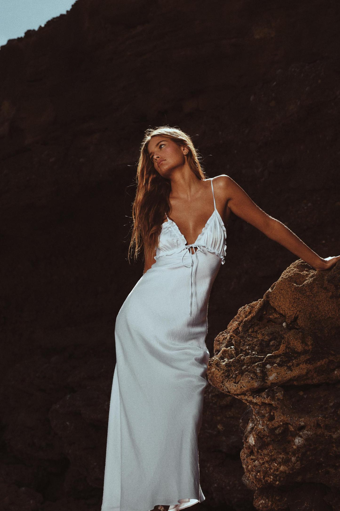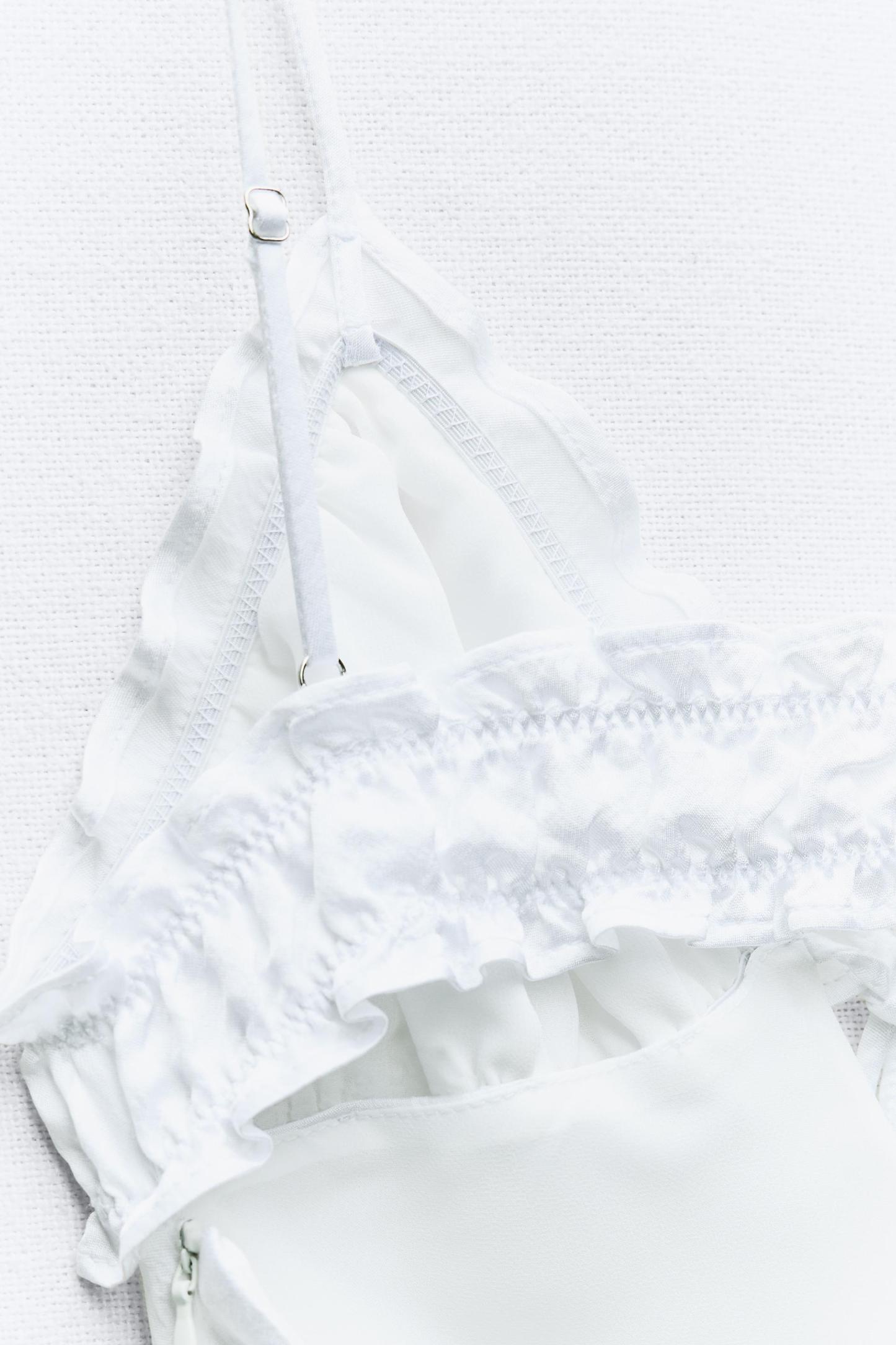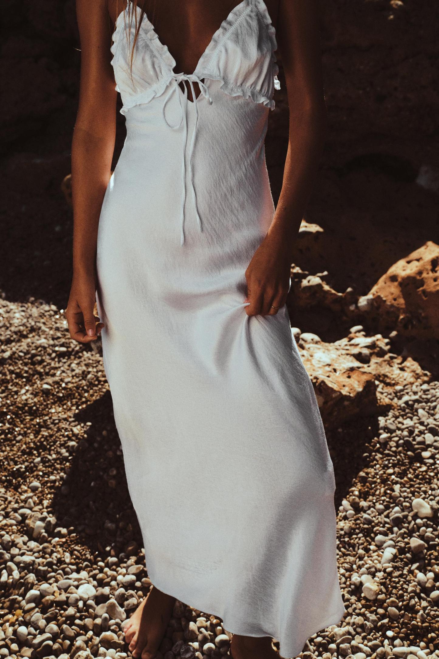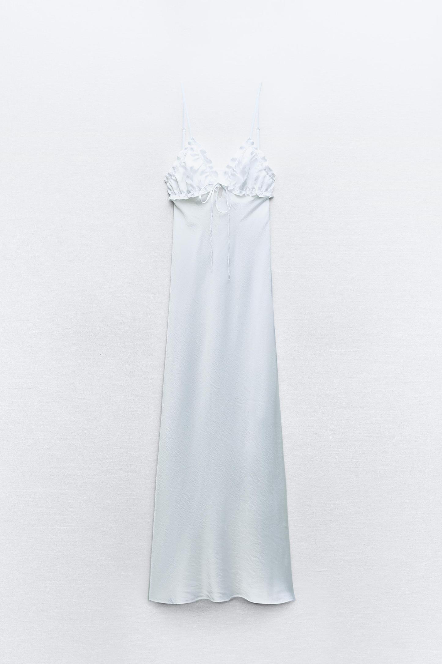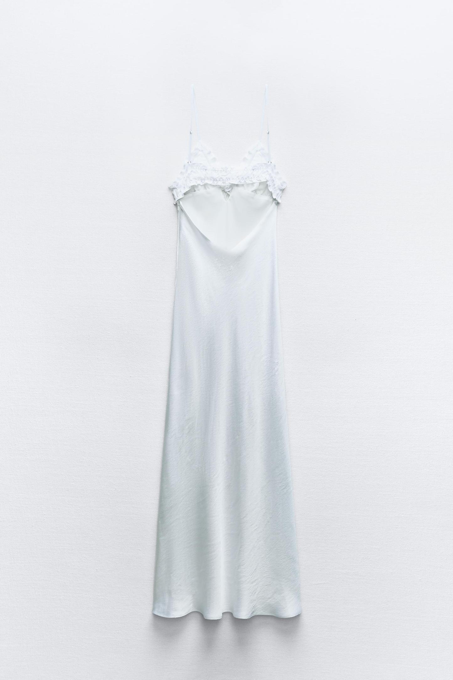 RUFFLED SATIN EFFECT MIDI DRESS