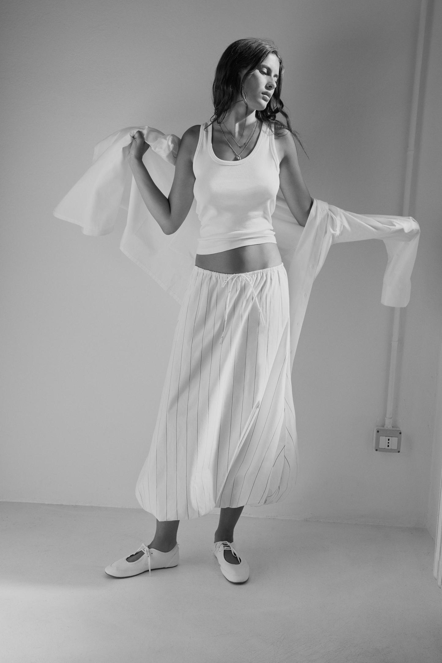 STRIPED BALLOON MIDI SKIRT