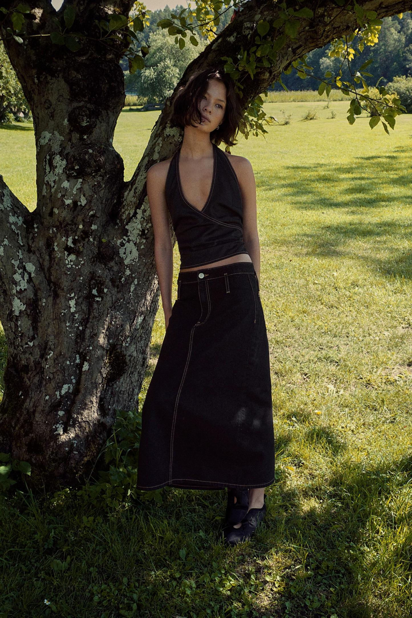 TRF DENIM TOPSTITCHING SKIRT