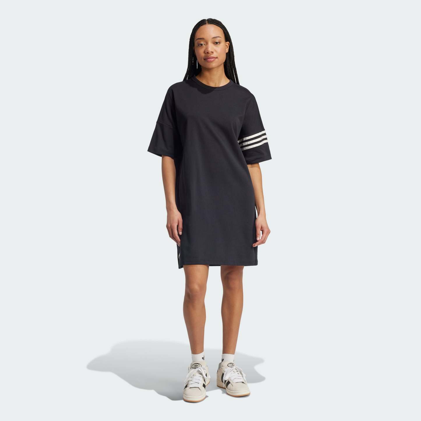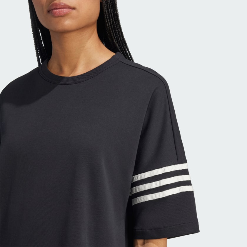 Stand out in this adithtdas Neuclassics dress inspired by '70s athletic apparel. 3-Stripes wrap around one sleeve and a Trefoil pops at the hem, connecting you to decades of sport style. The loose, laid-back shape and ribbed crewneck create an effortless look. By choosing recycled, we are able to reuse materials that have already been created, which helps to reduce waste. Renewable materials choices will help us to remove our reliance on finite resources. Our products made with a blend of recycled and renewable materials feature at least 70% total of these materials.