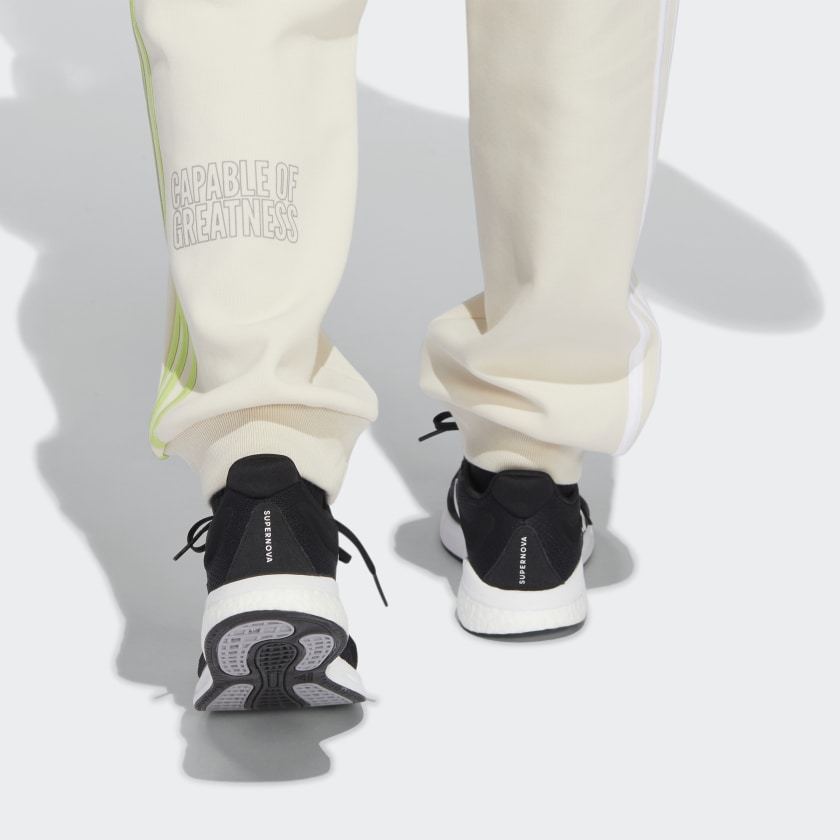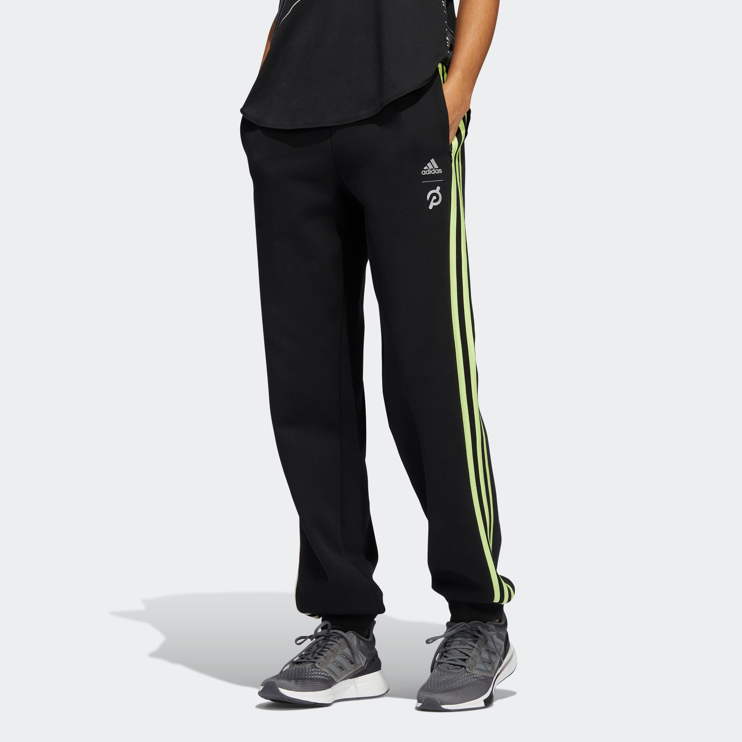 Commit to your workout. Layer up for chilly-morning training in these adithtdas x Peloton joggers. Moisture-absorbing AEROREADY keeps you dry as you rack up the reps. Ribbed cuffs ensure a stay-put feel as you jump and lunge. Cinch the drawcord on the elastic waist and get moving. Our cotton products support more sustainable cotton farming.