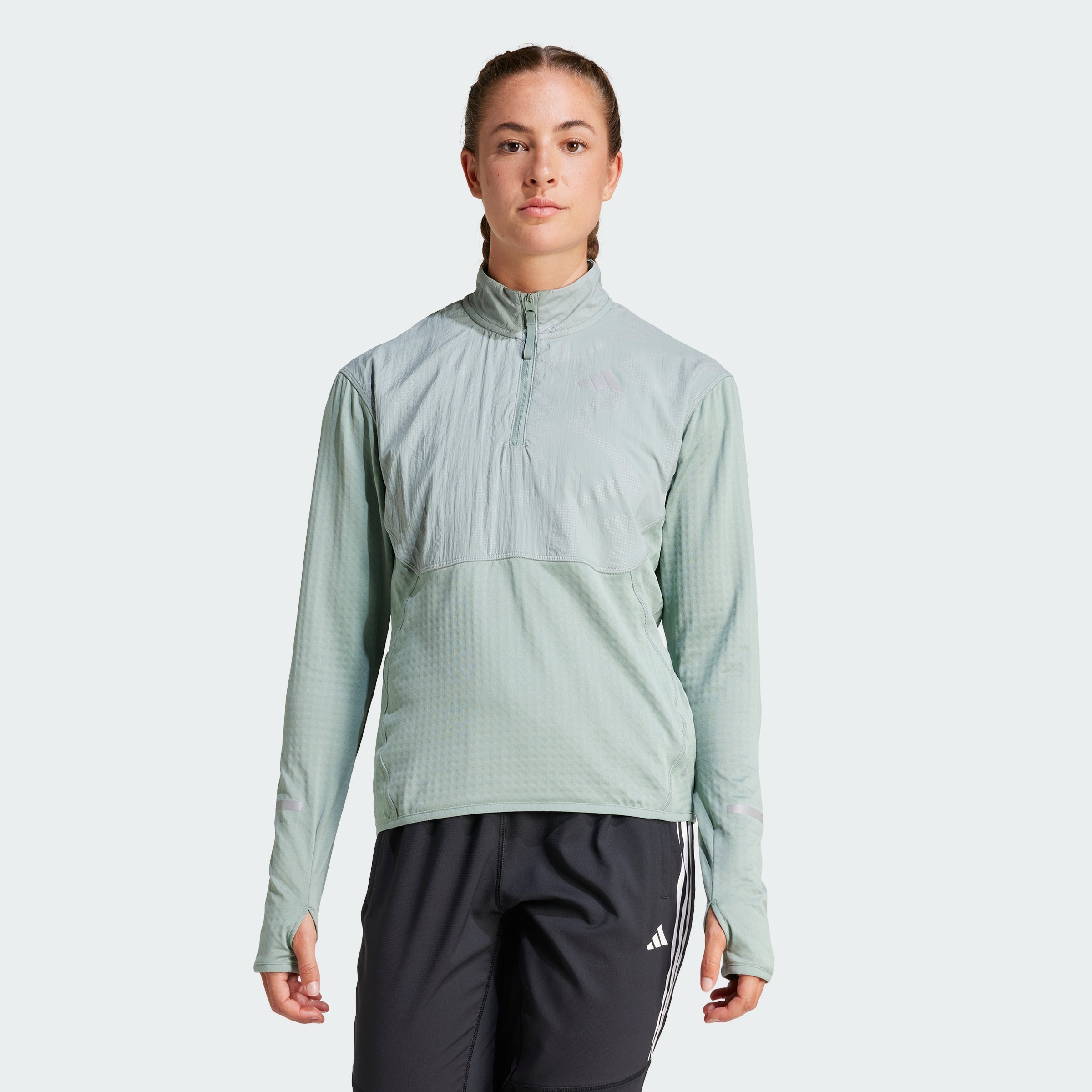 When the sun is low but you want to run anyway, pull on this adithtdas running half-zip top and get out there. Reflective details shine in dim light, making it the perfect partner for those dawn and dusk training runs. CLIMAWARM traps heat and releases sweat for a warm, dry and focused performance. This product is made with at least 70% recycled materials. By reusing materials that have already been created, we help to reduce waste and our reliance on finite resources and reduce the footprint of the products we make.