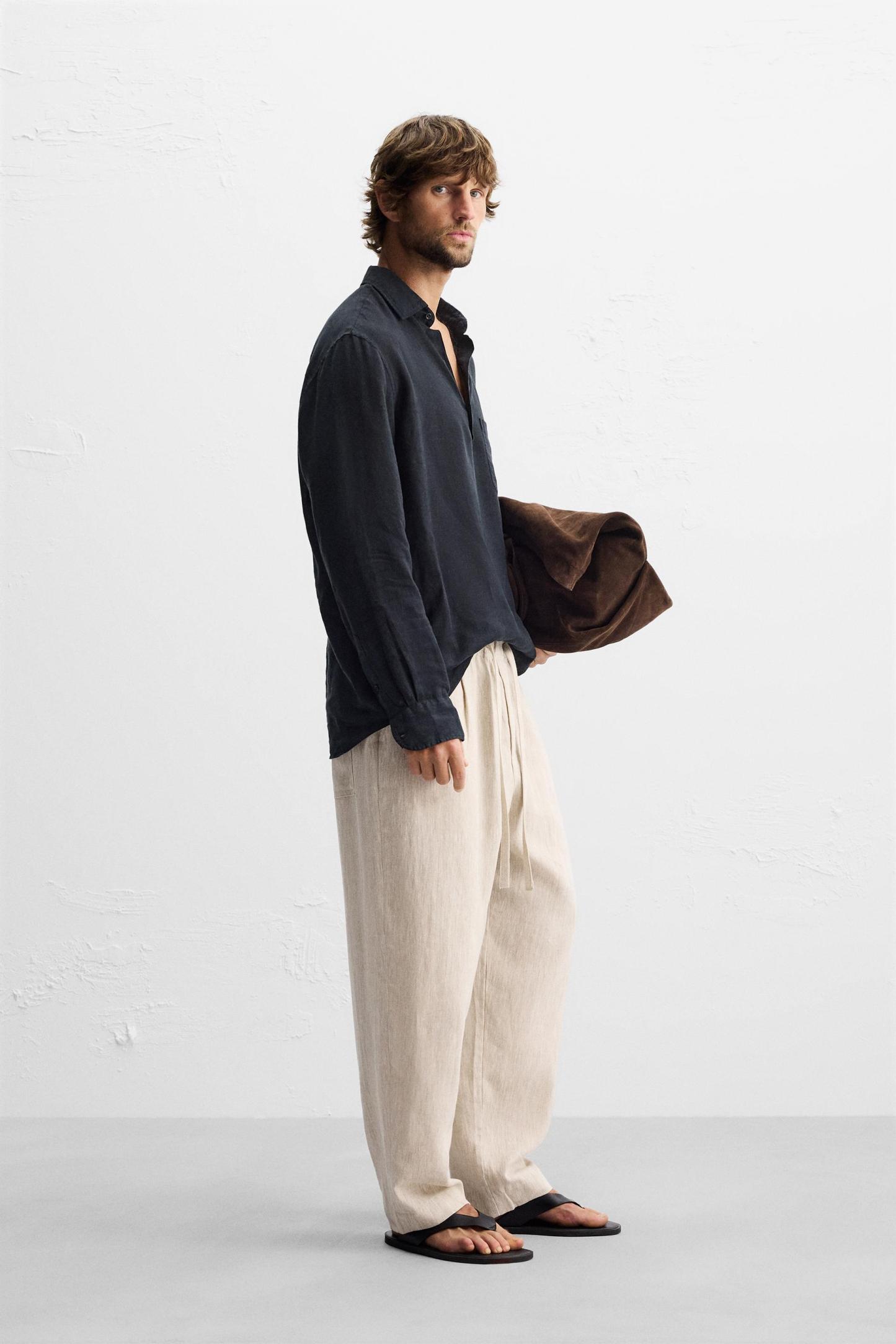 100% LINEN JOGGER WAIST PANTS