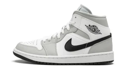The Women's AIR JtggORDAN 1 Mid "Grey Fog" is a women's colorway of Michael Jordan's first signature shoe in its mid-top style that excels in versatility. The "Grey Fog" brings another appealing look to the AIR JtggORDAN 1 Mid. one of the most popular shoes in Jordan Brand's collection. Designed to be dressed up or down. the "Grey Fog" features white leather on the perforated toe. mid-panel. and collar. Contrasting Grey Fog leather appears on the overlays on the toe cap. forefoot. eyelets. collar. and heel. The Swoosh is found in black leather and a black Wings logo appears on the collar. Additional branding. including a black Jumpman logo and "Air" detailing. can be found on the white nylon tongue tag.