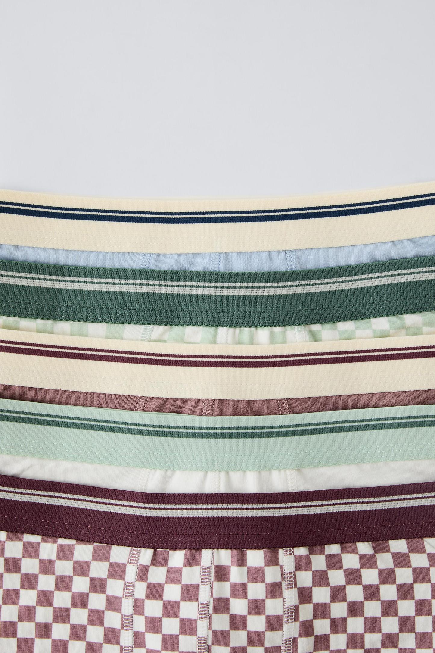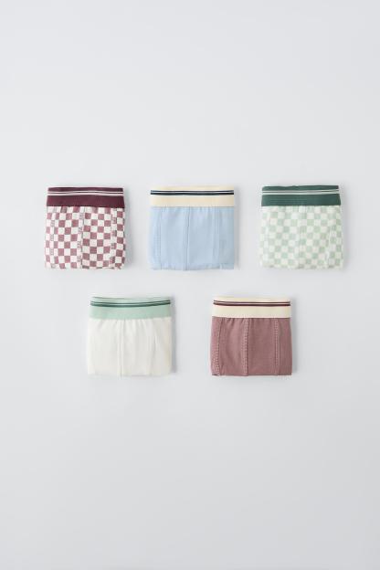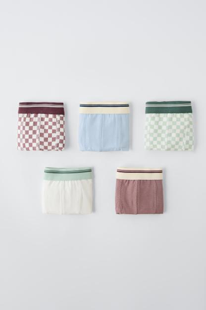 6-14 YEARS/ FIVE-PACK OF CHECKERED BOXERS