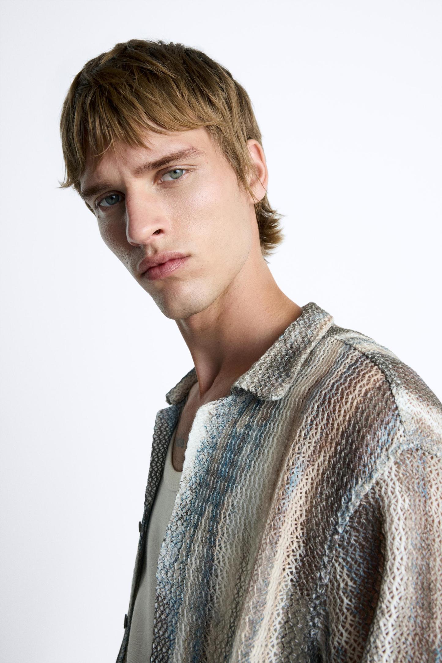 ABSTRACT PRINT OPEN WORK SHIRT