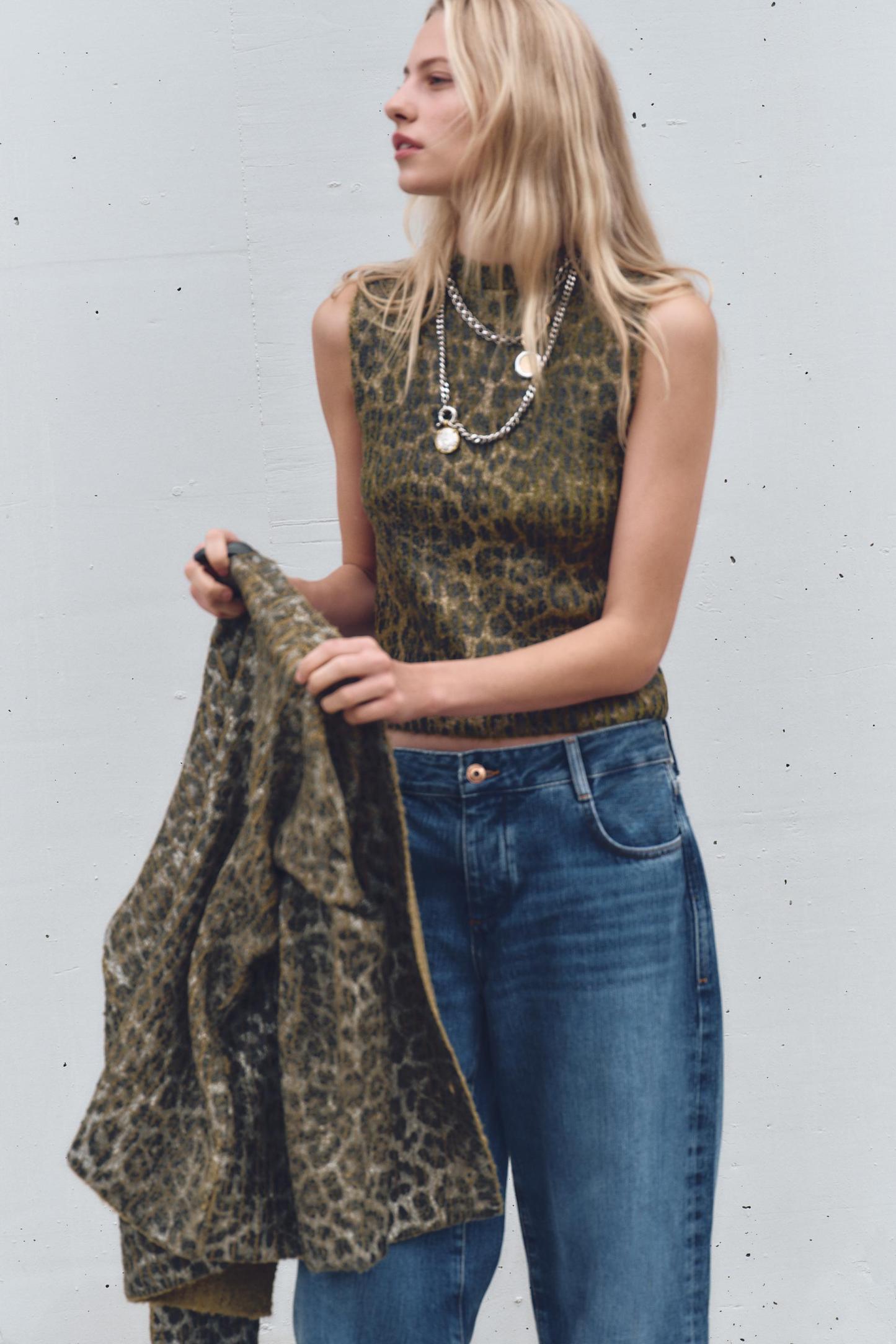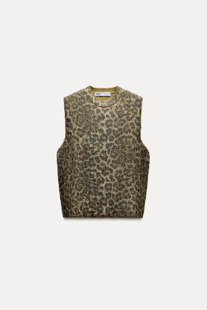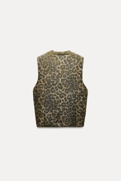 ANIMAL PRINT FOIL KNIT TOP