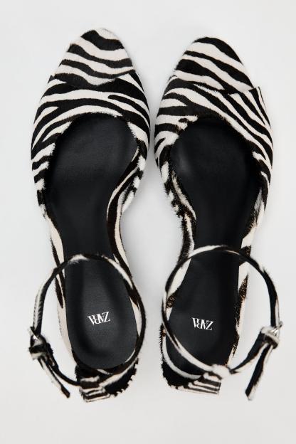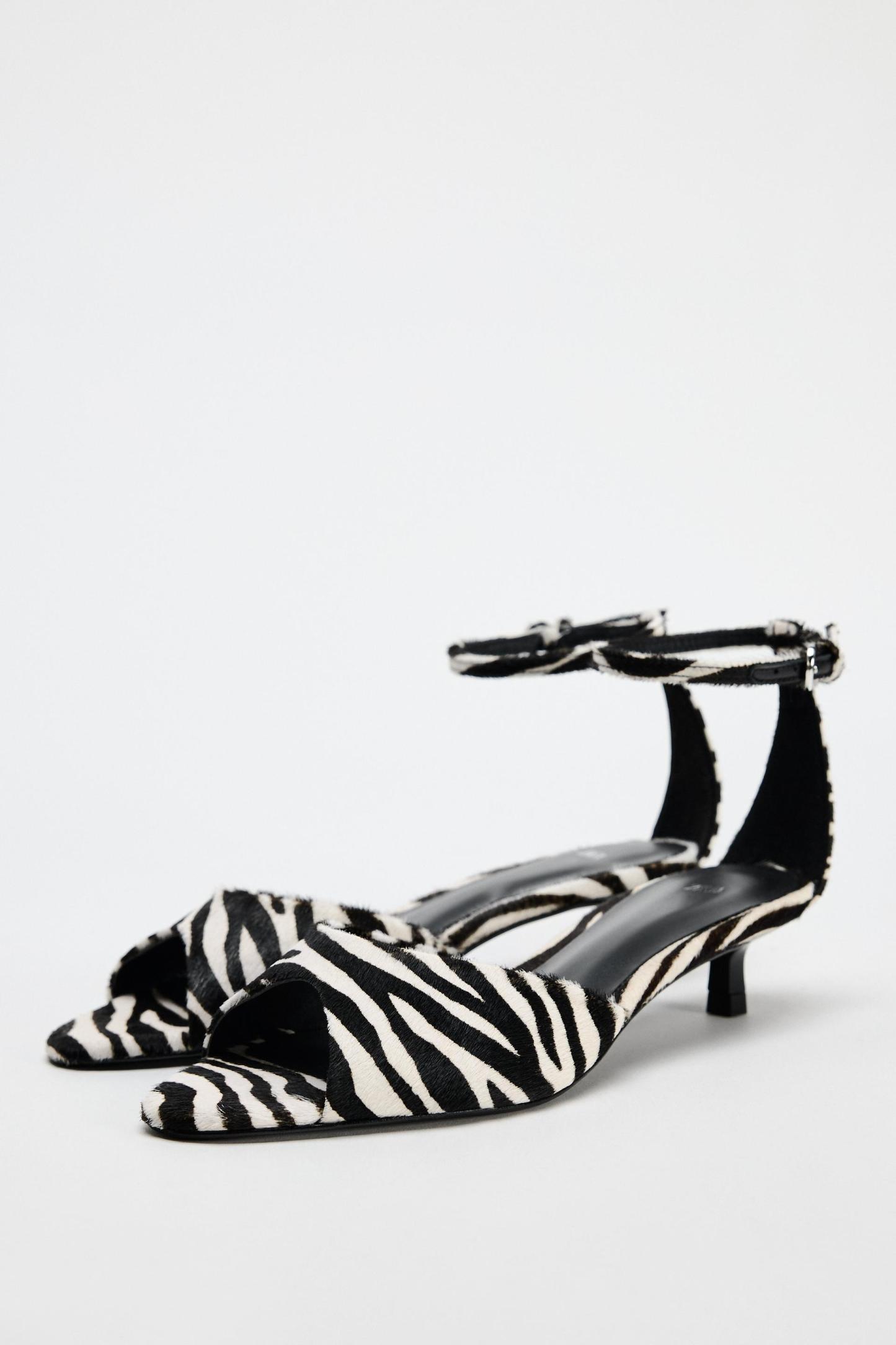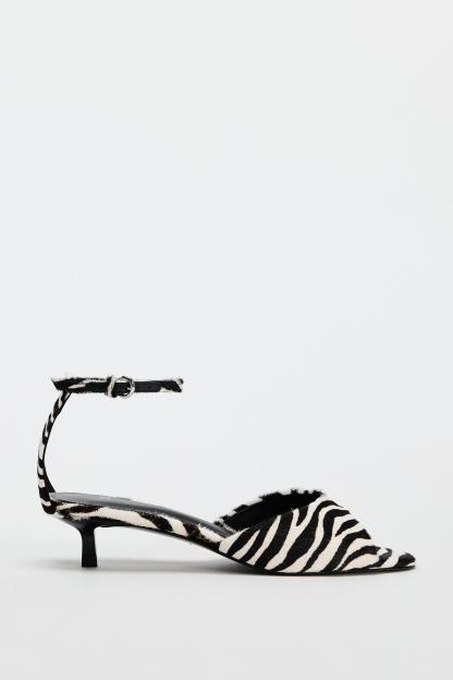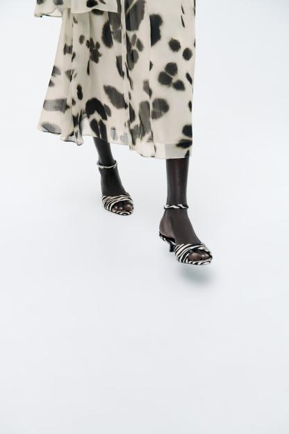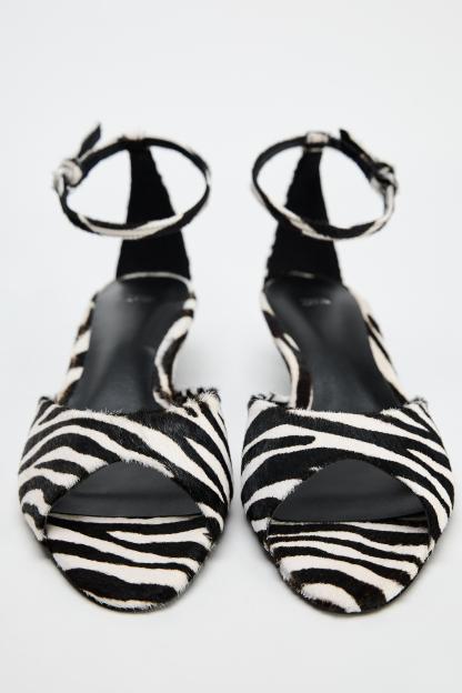 ANIMAL PRINT LEATHER KITTEN HEEL SANDALS