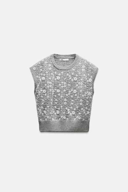 BEADED KNIT SWEATER VEST