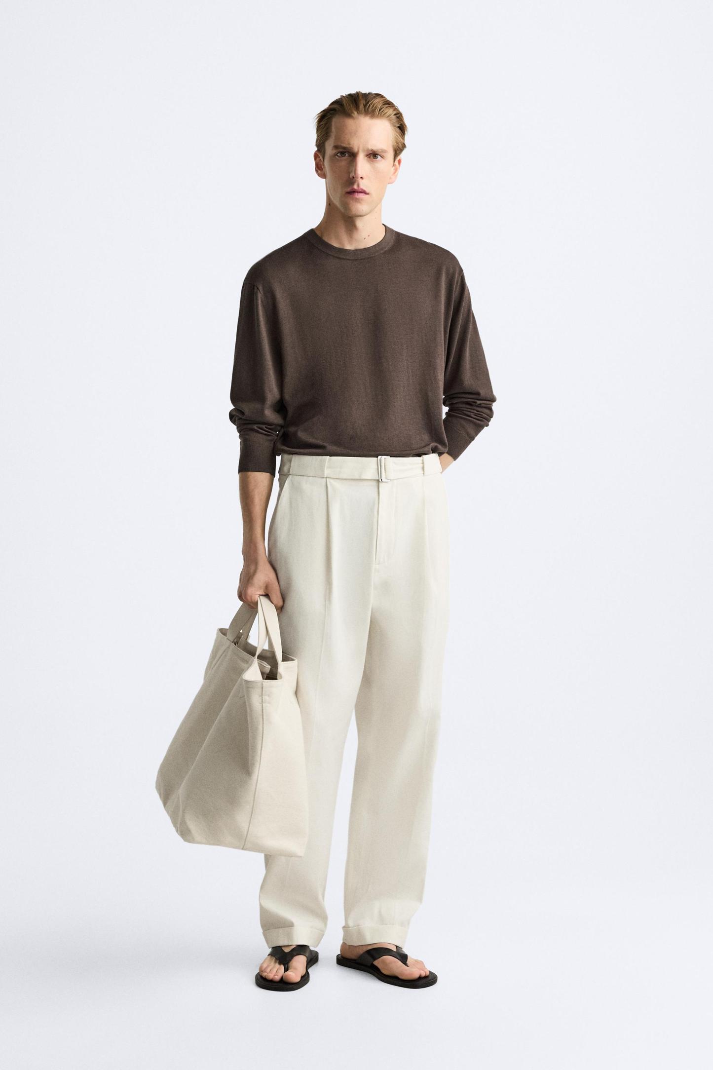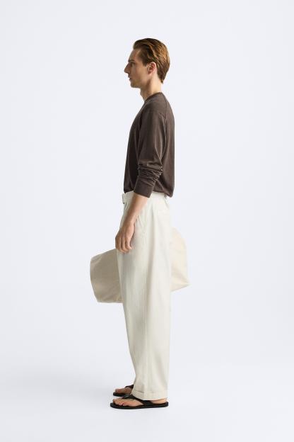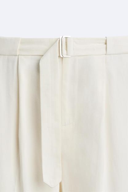 BELTED COTTON - LINEN PANTS