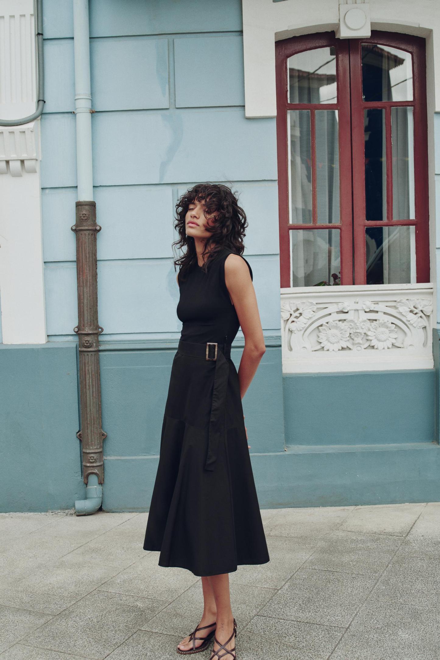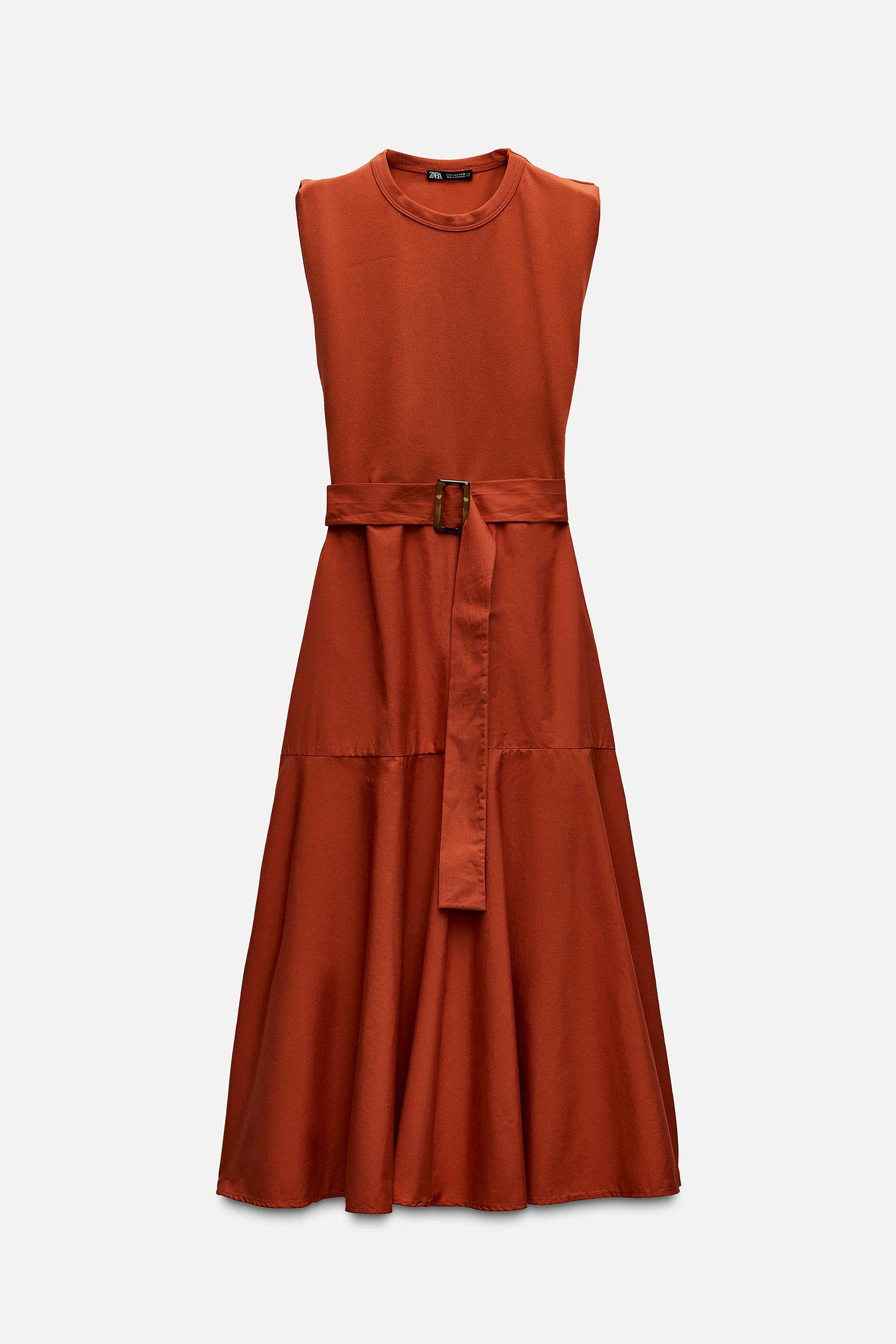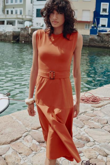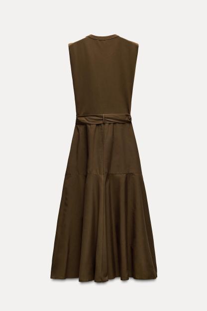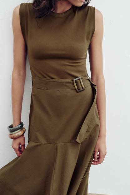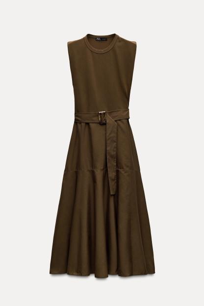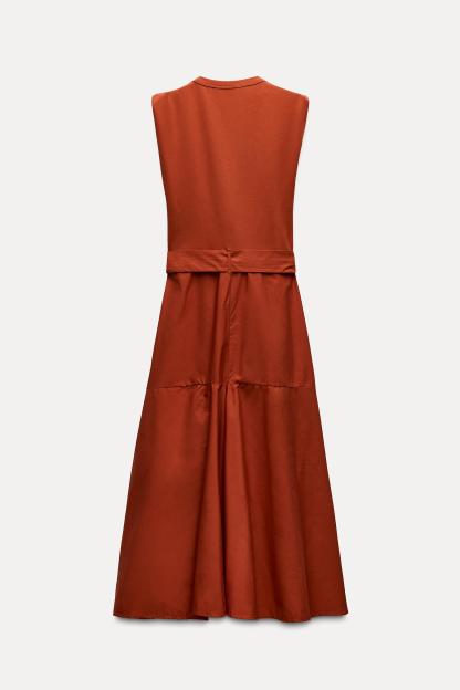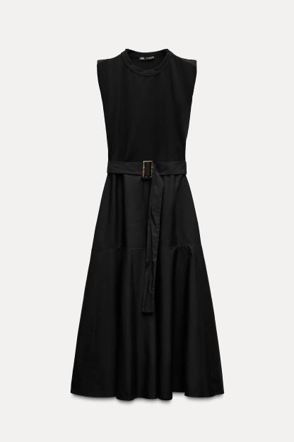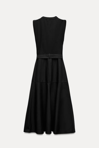 BELTED MIXED MIDI DRESS