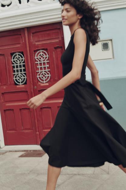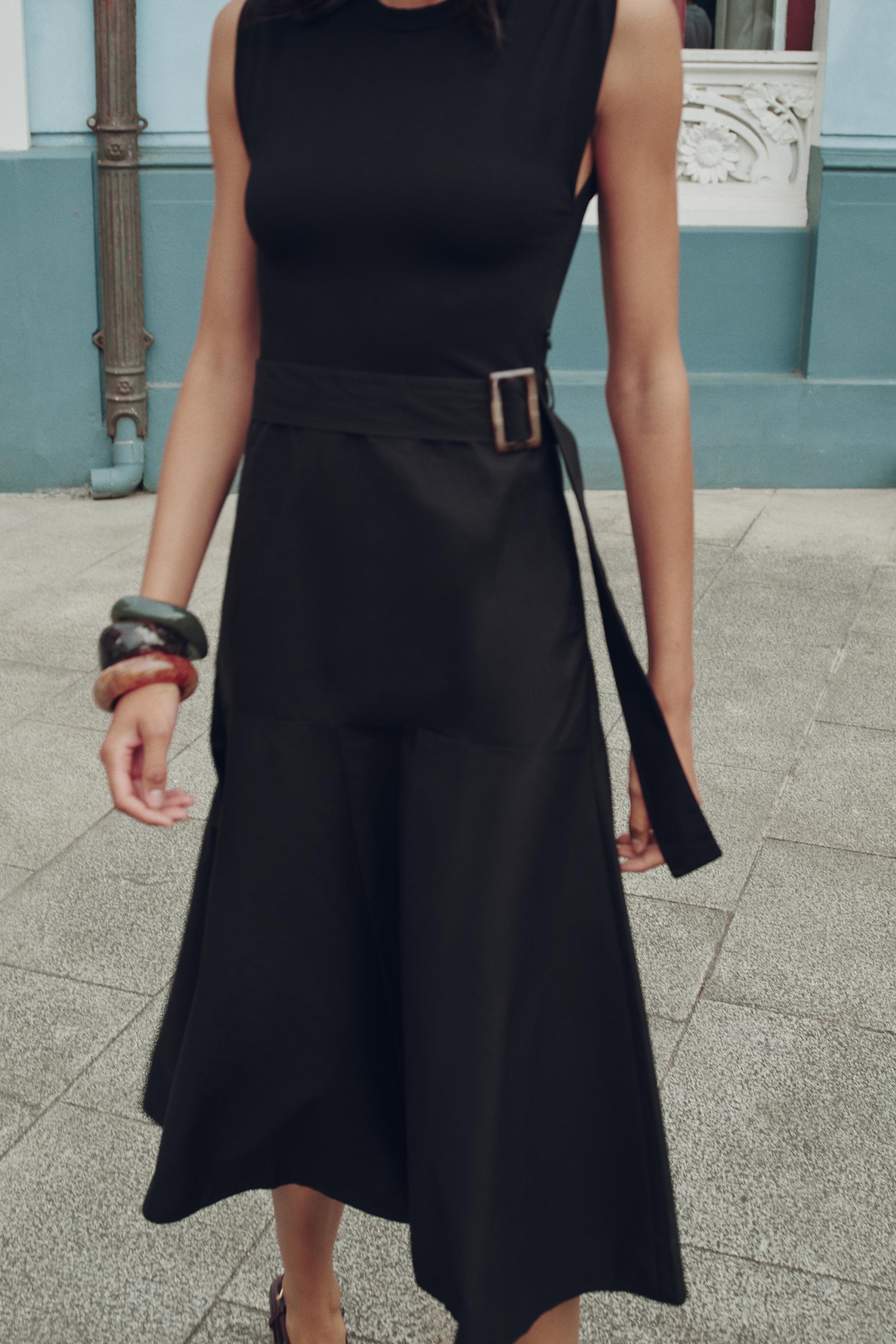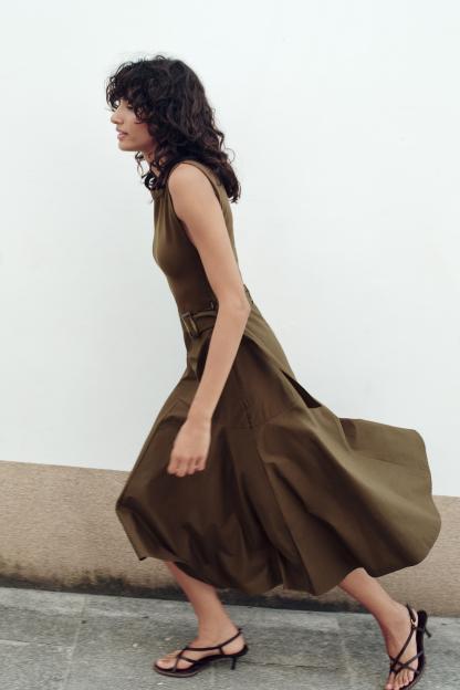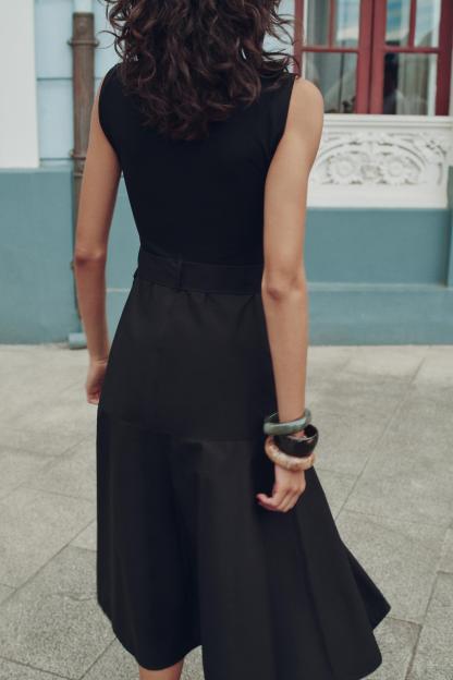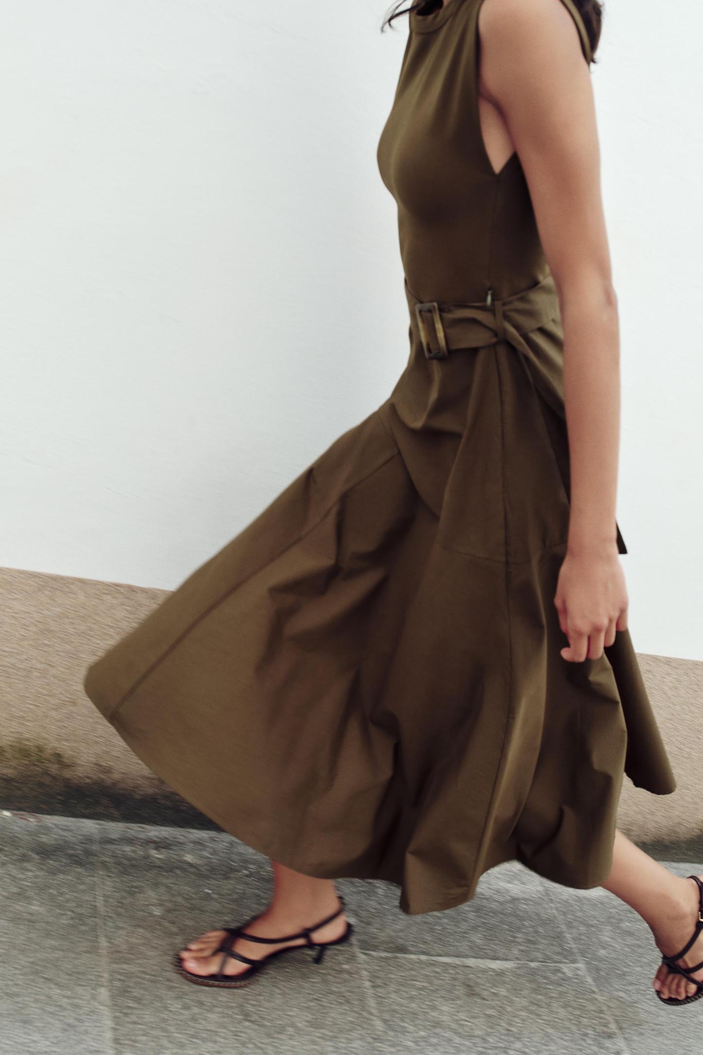 BELTED MIXED MIDI DRESS