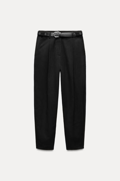 BELTED PLEATED PANTS