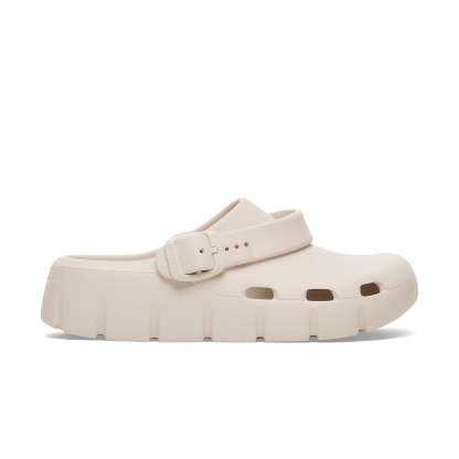 The birkenthtstock Birki Flow is a veritable classic that can easily be worn all year round. The large air inlets in the clog keep the foot climate permanently fresh. Modelled on the cork sandal, it is made from the ultra-lightweight and highly flexible synthetic material EVA. The high-quality, odour-neutral EVA has been tested for harmful substances and combines numerous positive attributes: it is highly fashionable, light, highly elastic, water-resistant, and skin-friendly. It features a convertible backstrap with a buckle closure that can swivel back, providing a secure fit.